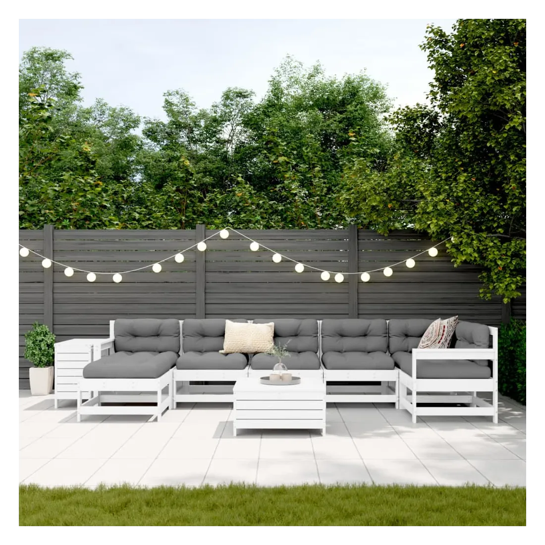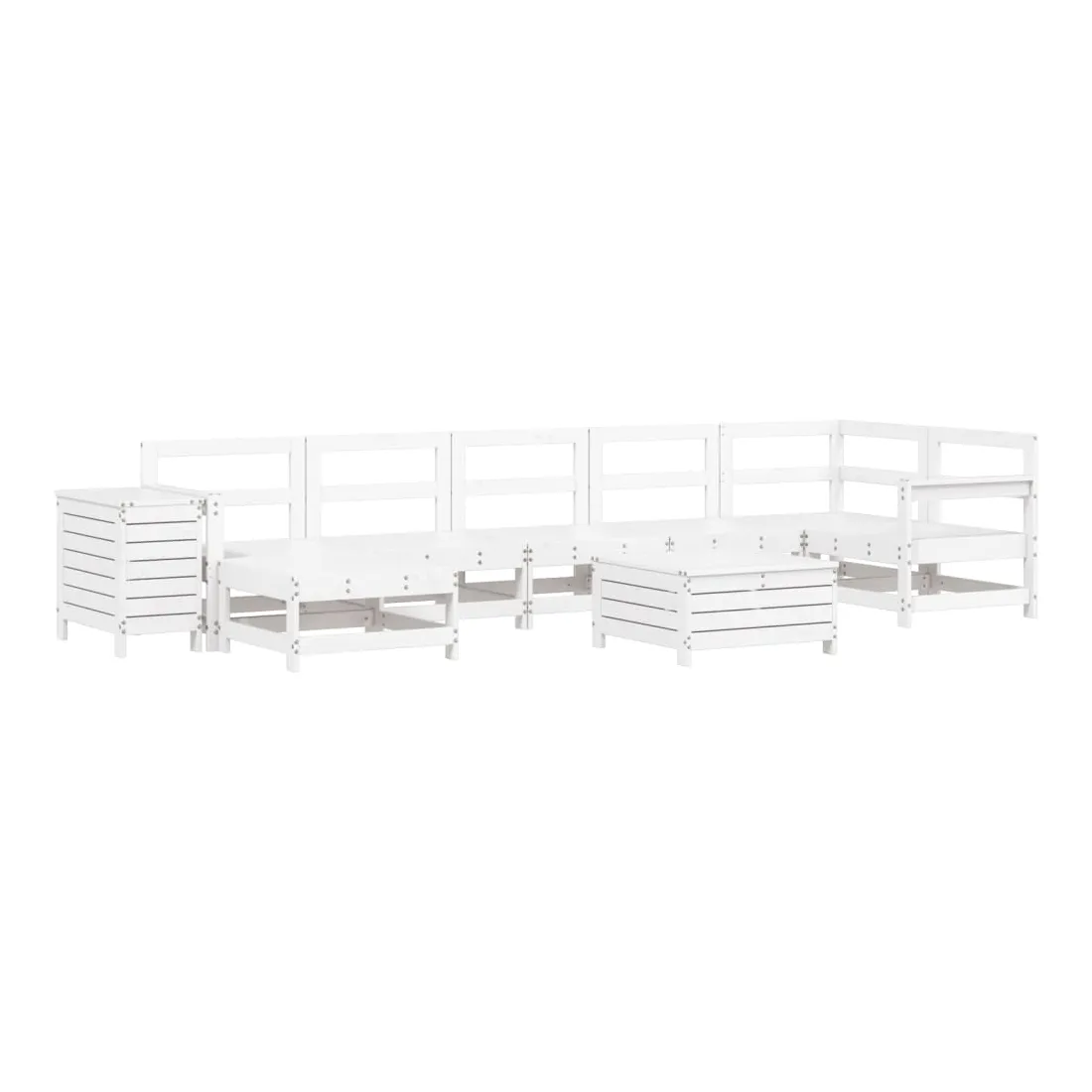 Salon de jardin 9 pcs blanc bois de pin massif