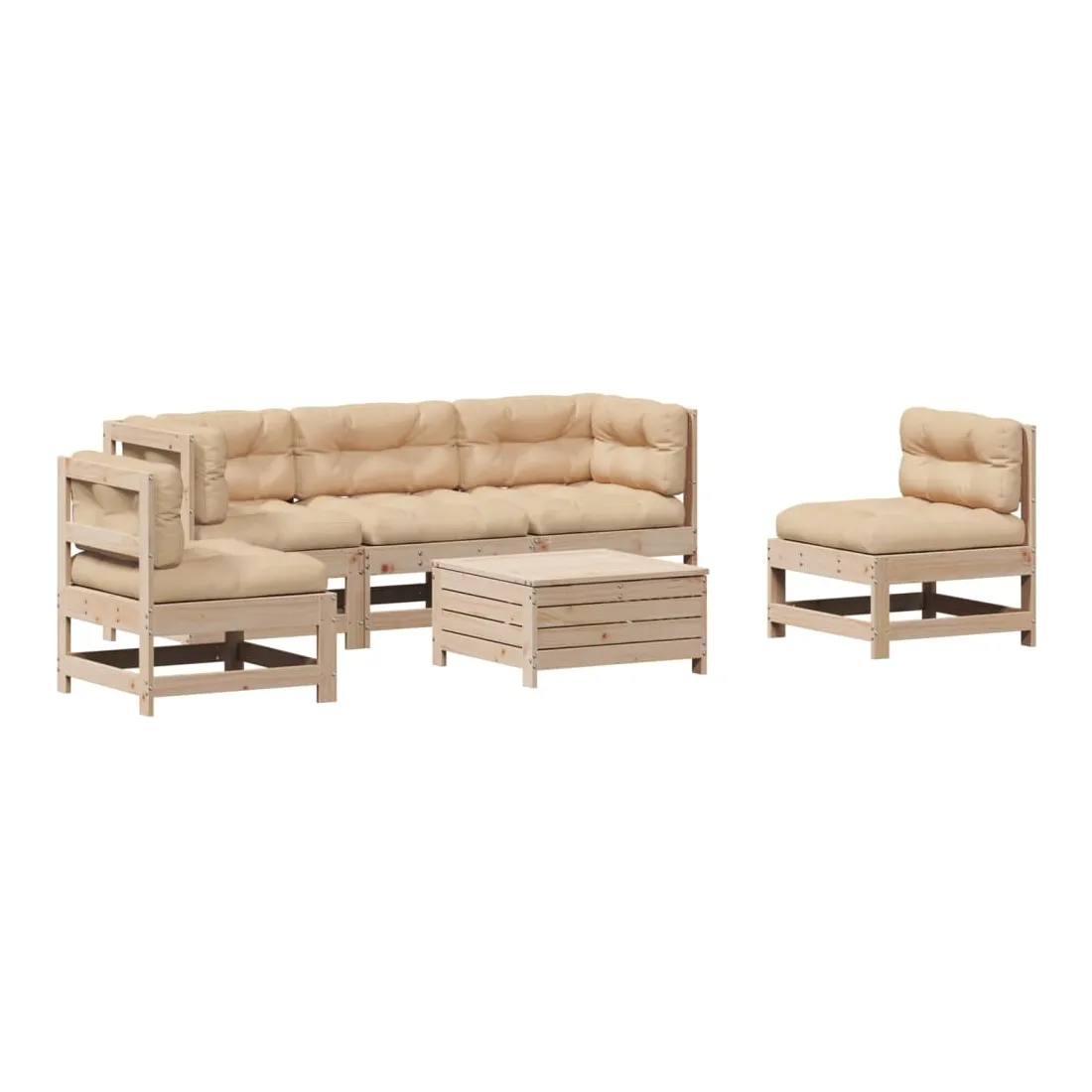 Cet ensemble de salon de jardin en bois avec un design à lattes sera un excellent complément à votre jardin, patio ou terrasse pour profiter d'un moment agréable avec votre famille ou vos amis. Bois de pin massif : le bois de pin massif est un matériau naturel magnifique. Le bois de pin a un grain droit et les nœuds donnent au matériau son aspect caractéristique et rustique.Design à lattes : le design à lattes de la chaise de jardin en bois empêche l'accumulation de l'eau, ce qui permet de garder le siège au sec et d'éviter un pourrissement inutile.Expérience d'assise confortable : le dossier et l'accoudoir ajoutent un confort d'assise supplémentaire à l'ensemble de meubles de jardin. De plus, le coussin bien rembourré vous permet de vous asseoir confortablement.Utilisation polyvalente : le pouf d'extérieur avec couvercle peut non seulement être utilisé pour s'asseoir ou se détendre, mais il peut également être utilisé comme table basse pour contenir vos boissons, votre nourriture et le meuble de jardin dispose d'un espace de rangement sous le siège. Conception modulaire : cet ensemble de meubles d'extérieur a une conception modulaire, ce qui le rend complètement flexible et facile à déplacer, afin que vous puissiez créer un agencement de meubles d'extérieur personnalisé. Bon à savoir :Pour que vos meubles d'extérieur restent beaux, nous vous recommandons de les protéger avec une housse imperméable.