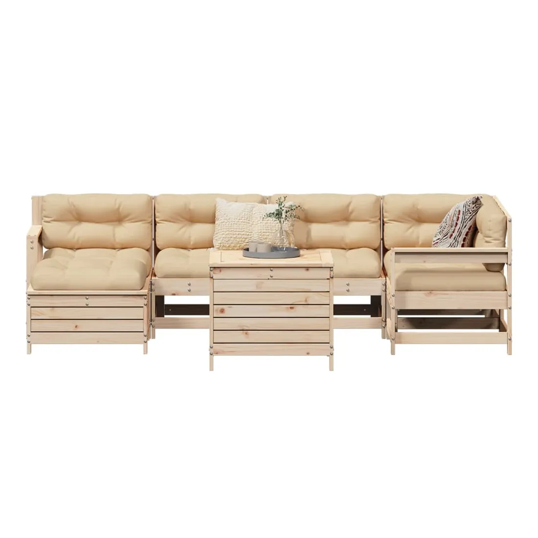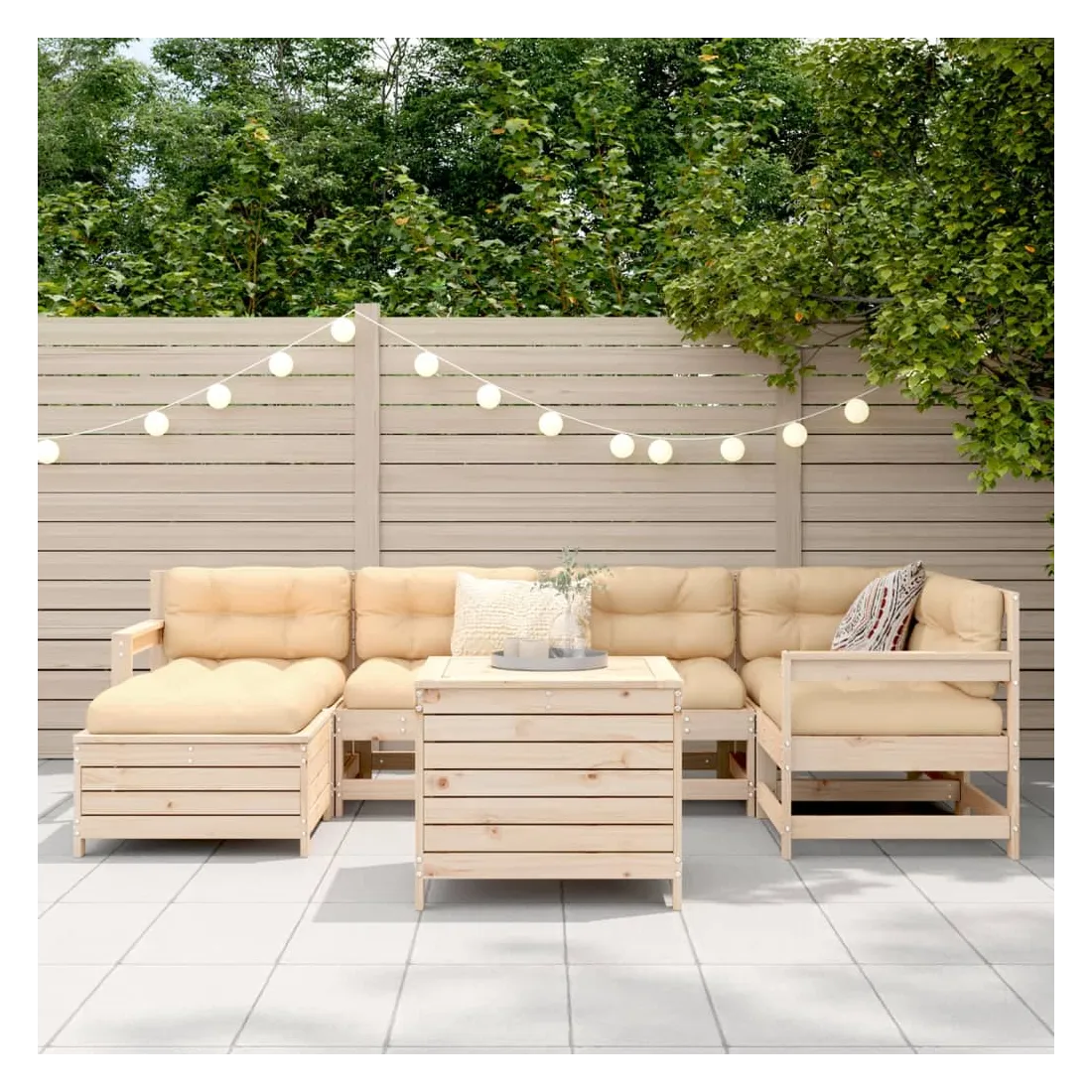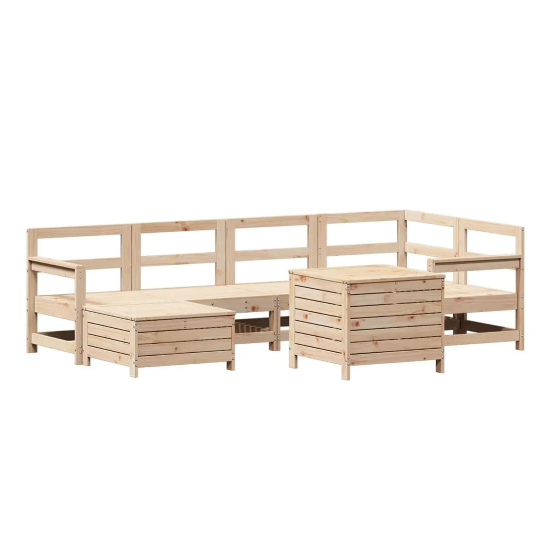 Cet ensemble de salon de jardin en bois avec un design à lattes sera un excellent complément à votre jardin, patio ou terrasse pour profiter d'un moment agréable avec votre famille ou vos amis. Matériau robuste et durable : le bois de pin massif est connu pour sa résistance et sa durabilité. Ses grains droits et ses nœuds distinctifs contribuent à son charme rustique. Bien ventilé et prévention de l'accumulation d'eau : la conception à lattes favorise une circulation optimale de l'air et empêche efficacement l'accumulation d'eau, assurant ainsi une assise sèche et confortable. Utilisation polyvalente : le repose-pied de jardin peut non seulement être utilisé pour s'asseoir ou se détendre, mais il peut également être utilisé comme table basse pour contenir vos boissons, votre nourriture et d'autres décorations. Table pratique : la table de jardin vous offre un endroit pratique pour atteindre facilement vos essentiels. Conception modulaire : cet ensemble de meubles d'extérieur a une conception modulaire, ce qui le rend complètement flexible et facile à déplacer, afin que vous puissiez créer un agencement de meubles d'extérieur personnalisé. Bon à savoir :Pour que vos meubles d'extérieur restent beaux, nous vous recommandons de les protéger avec une housse imperméable.