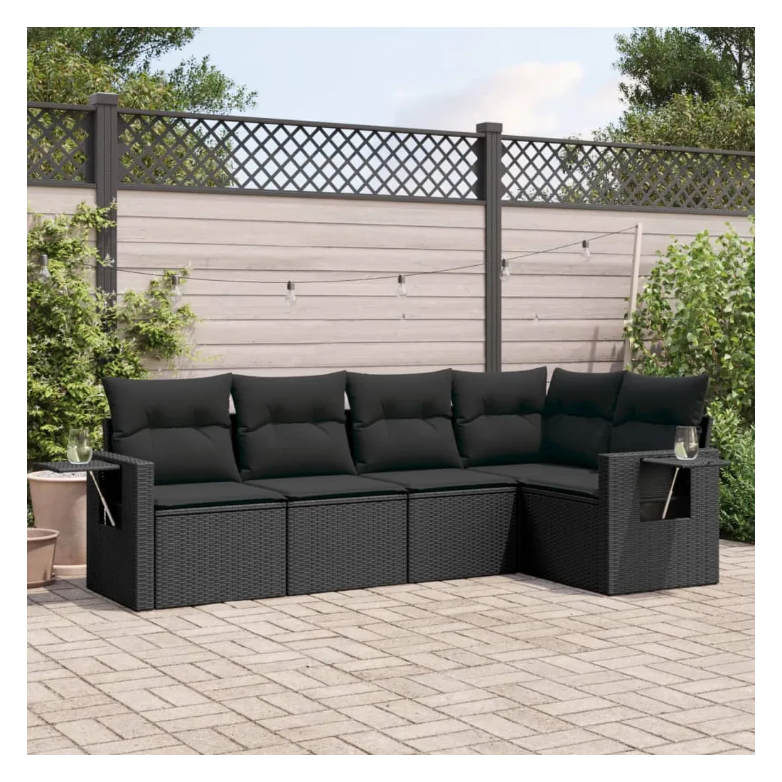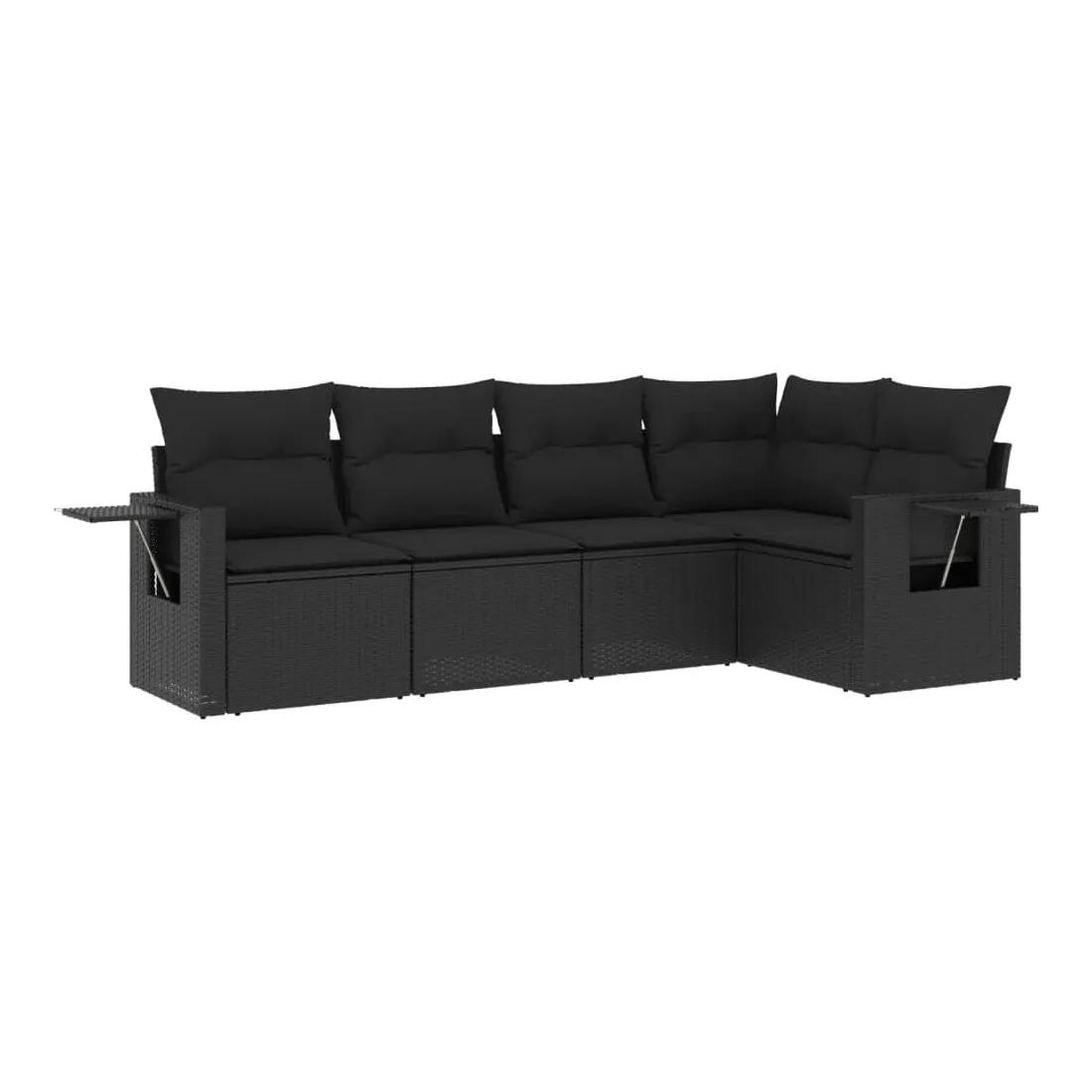 Salon de jardin 5 pcs avec coussins noir résine tressée