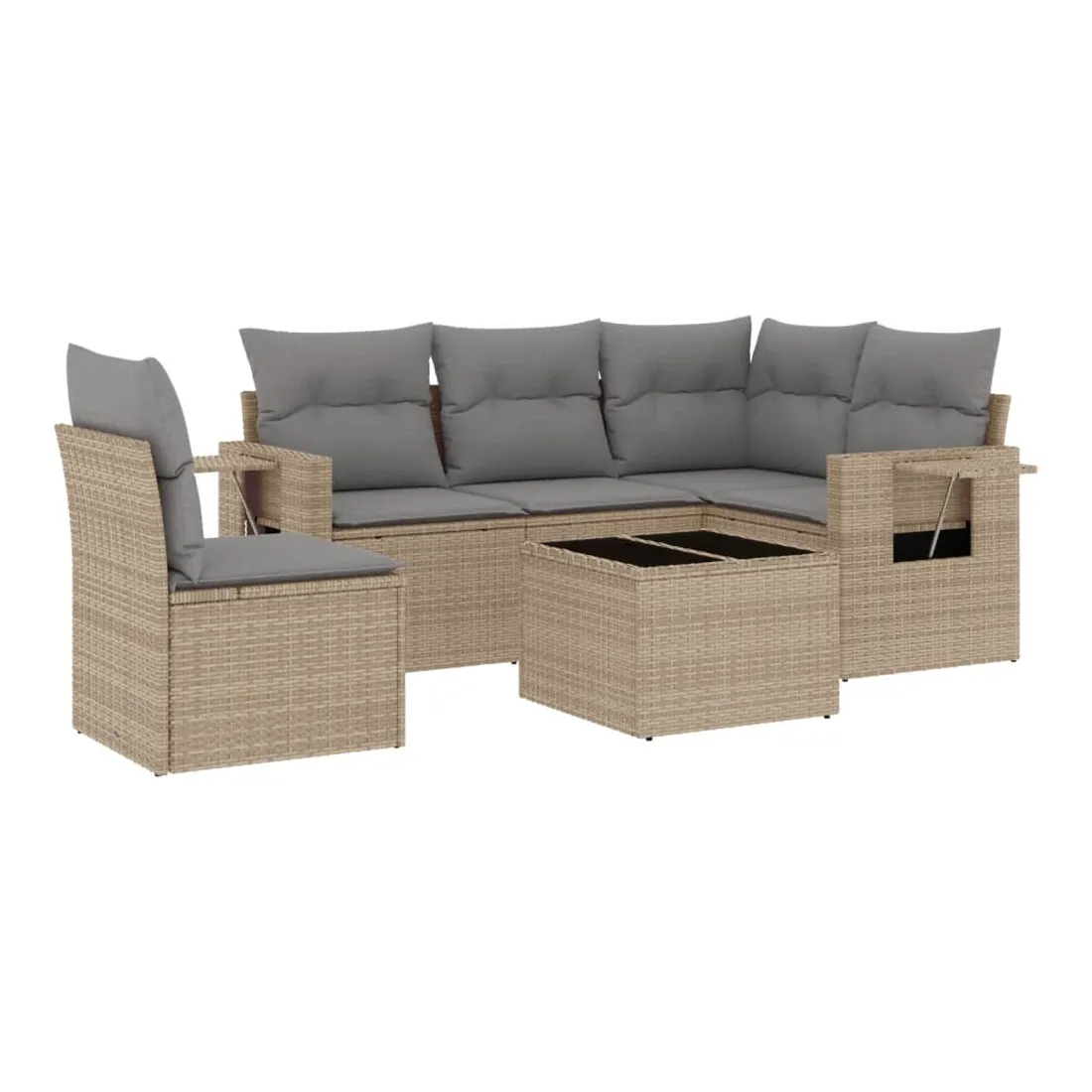 Salon de jardin avec coussins 6 pcs beige résine tressée