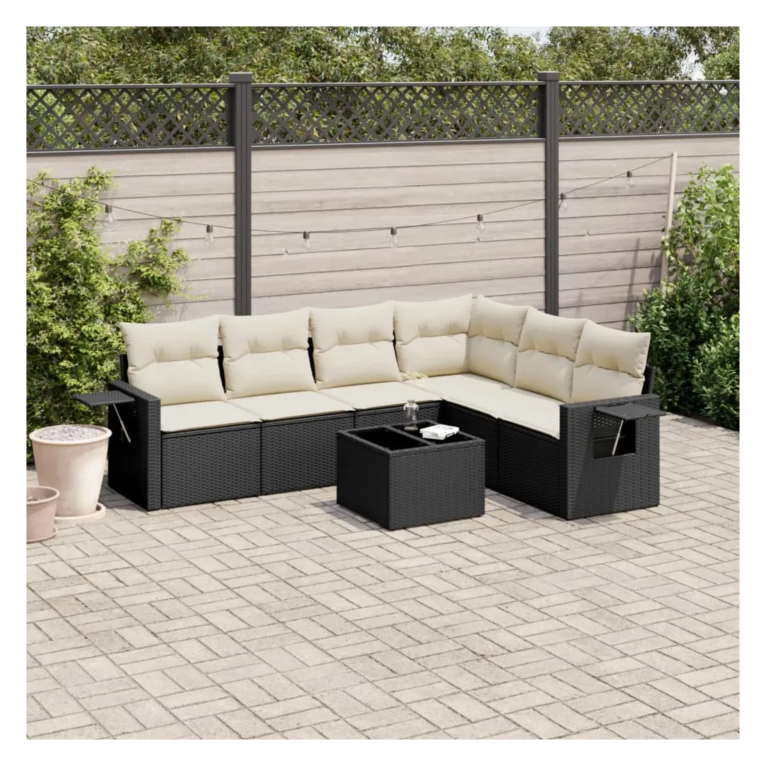 Cet ensemble de canapés de jardin est le complément parfait de votre arrière-cour, terrasse ou patio, offrant un espace confortable et accueillant pour discuter avec la famille et les amis ou simplement se détendre et profiter de l'extérieur. Matériau durable : la résine tressée, également connue sous le nom de poly rotin, est un matériau synthétique solide et nécessitant peu d'entretien qui ressemble au rotin naturel. Il est léger, facile à nettoyer et couramment utilisé pour les meubles d'extérieur en raison de sa durabilité et de ses propriétés de résistance aux intempéries.Fonction de rangement avec sac résistant à l'eau : le mobilier de jardin dispose d'un espace de rangement sous l'assise, complété par un sac résistant à l'eau pour ranger coussins, jouets et autres objets. Le sac intérieur peut être solidement fixé au mobilier d'extérieur grâce à des attaches auto-agrippantes pour plus de stabilité.Table d'appoint pratique : ce mobilier d'extérieur comprend une table d'appoint pliable avec un ressort à gaz sur les accoudoirs, offrant un endroit pratique pour garder vos essentiels à portée de main.Housse amovible et lavable : ces coussins de siège sont dotés de housses amovibles pour un lavage et un entretien faciles.Conception modulaire : cet ensemble de meubles d'extérieur a une conception modulaire, ce qui le rend complètement flexible et facile à déplacer, afin que vous puissiez créer un agencement de meubles d'extérieur personnalisé. Bon à savoir :Pour que vos meubles d'extérieur restent beaux, nous vous recommandons de les protéger avec une housse imperméable.