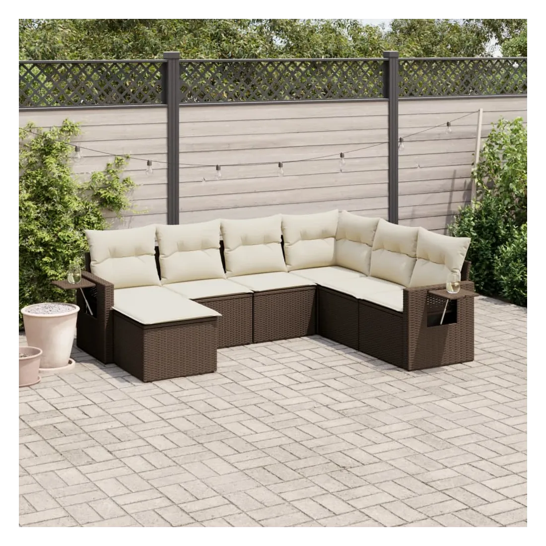 Cet ensemble de canapés de jardin est le complément parfait de votre arrière-cour, terrasse ou patio, offrant un espace confortable et accueillant pour discuter avec la famille et les amis ou simplement se détendre et profiter de l'extérieur. Matériau durable : la résine tressée, également connue sous le nom de poly rotin, est un matériau synthétique solide et nécessitant peu d'entretien qui ressemble au rotin naturel. Il est léger, facile à nettoyer et couramment utilisé pour les meubles d'extérieur en raison de sa durabilité et de ses propriétés de résistance aux intempéries.Fonction de rangement avec sac résistant à l'eau : le mobilier de jardin dispose d'un espace de rangement sous l'assise, complété par un sac résistant à l'eau pour ranger coussins, jouets et autres objets. Le sac intérieur peut être solidement fixé au mobilier d'extérieur grâce à des attaches auto-agrippantes pour plus de stabilité.Table d'appoint pratique : ce mobilier d'extérieur comprend une table d'appoint pliable avec un ressort à gaz sur les accoudoirs, offrant un endroit pratique pour garder vos essentiels à portée de main.Housse amovible et lavable : ces coussins de siège sont dotés de housses amovibles pour un lavage et un entretien faciles.Conception modulaire : cet ensemble de meubles d'extérieur a une conception modulaire, ce qui le rend complètement flexible et facile à déplacer, afin que vous puissiez créer un agencement de meubles d'extérieur personnalisé. Bon à savoir :Pour que vos meubles d'extérieur restent beaux, nous vous recommandons de les protéger avec une housse imperméable.