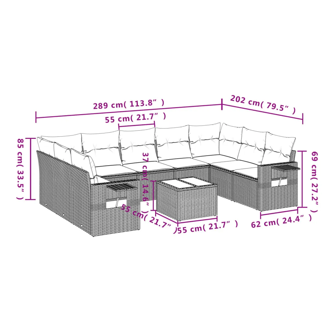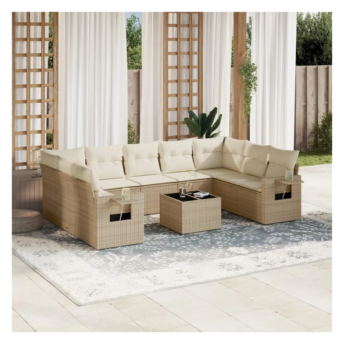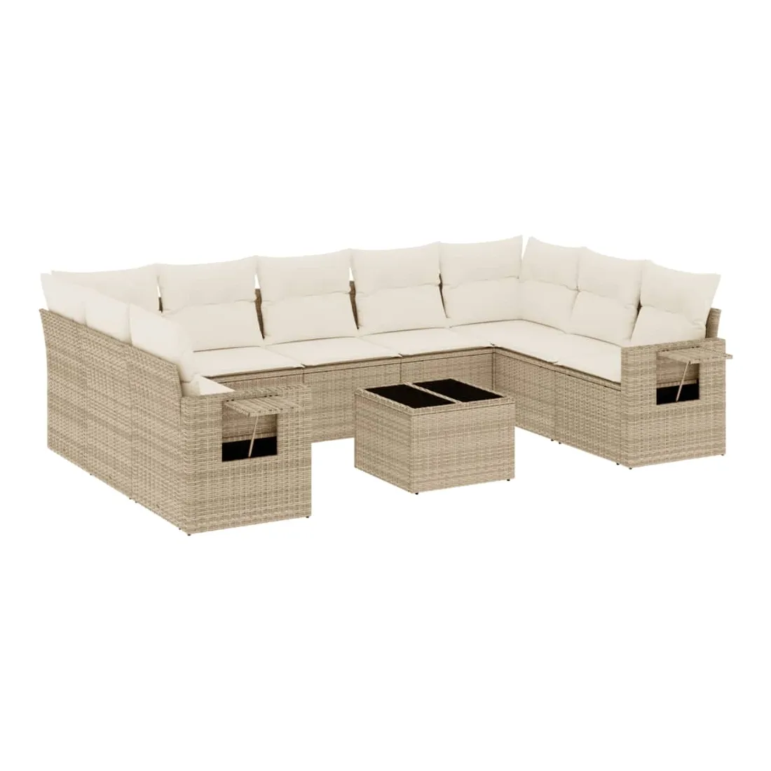 Salon de jardin avec coussins 10 pcs beige résine tressée
