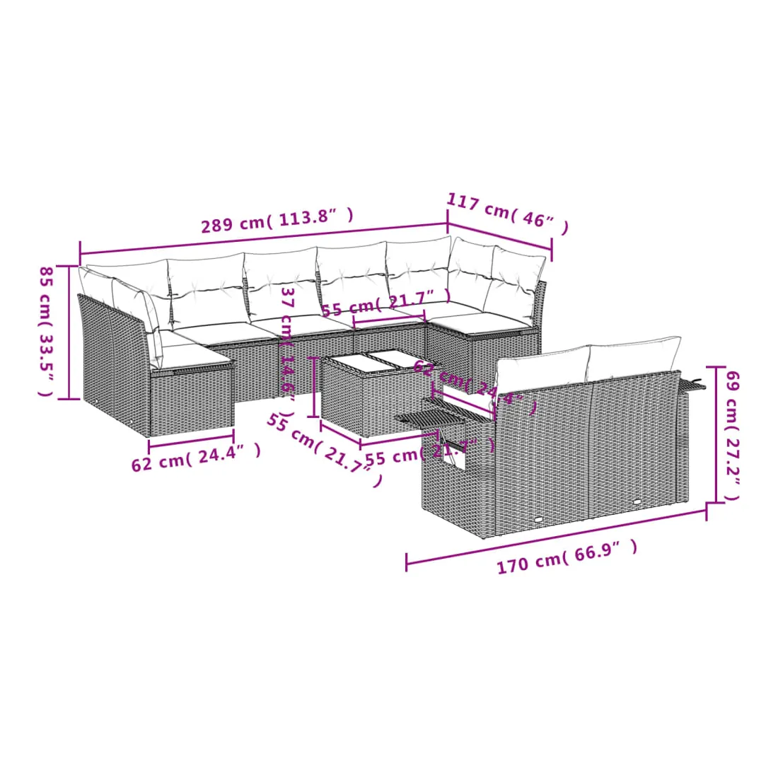 Salon de jardin avec coussins 10 pcs gris résine tressée