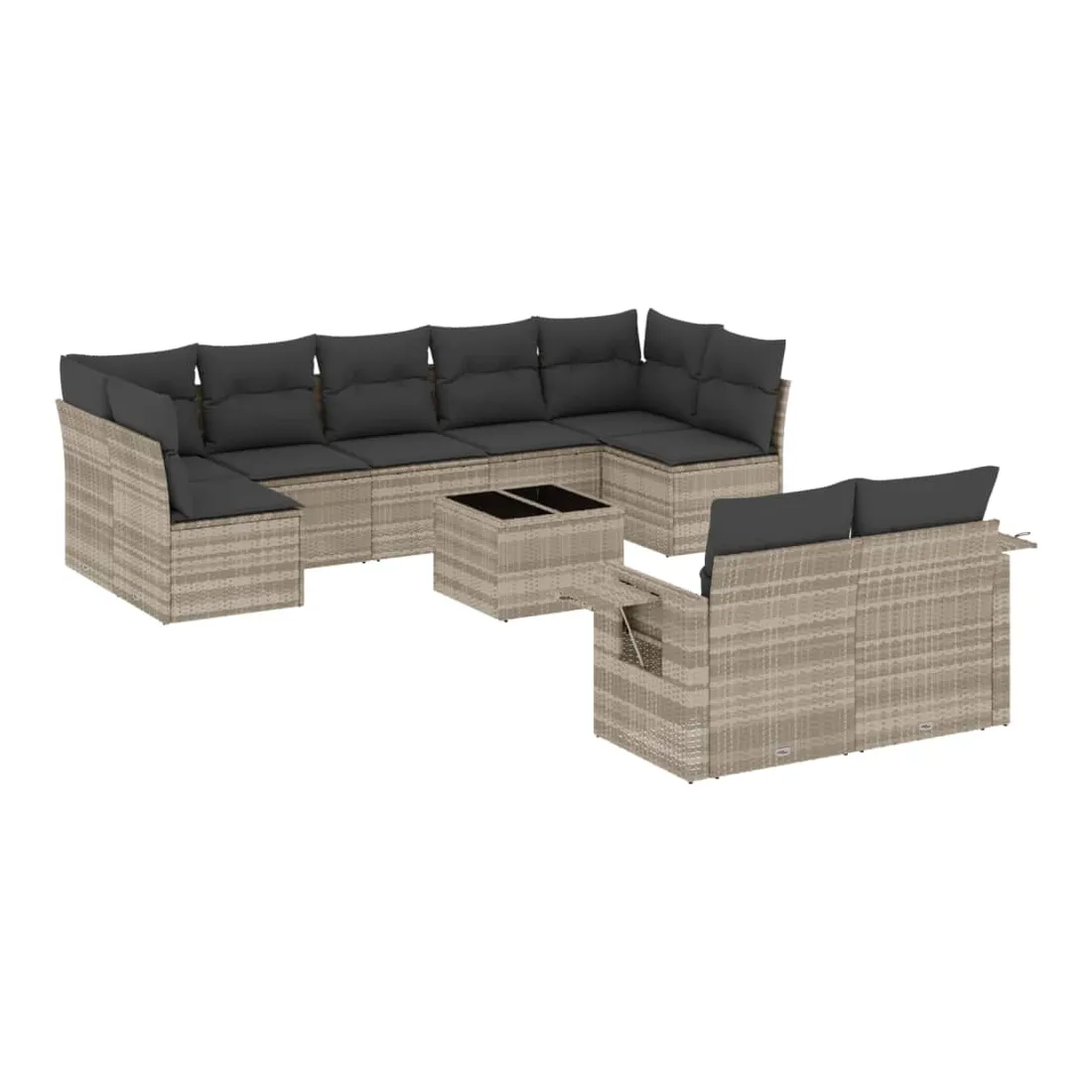 Salon de jardin avec coussins 10 pcs gris clair résine tressée