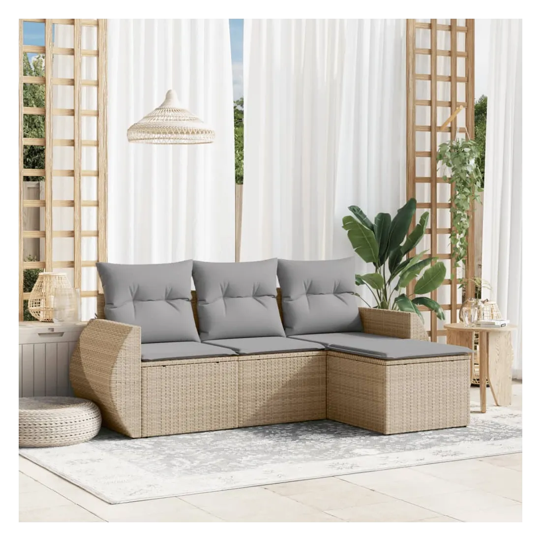 Cet ensemble de canapés de jardin est le complément parfait de votre arrière-cour, terrasse ou patio, offrant un espace confortable et accueillant pour discuter avec la famille et les amis ou simplement se détendre et profiter de l'extérieur. Matériau durable : la résine tressée, également connue sous le nom de poly rotin, est un matériau synthétique solide et nécessitant peu d'entretien qui ressemble au rotin naturel. Il est léger, facile à nettoyer et couramment utilisé pour les meubles d'extérieur en raison de sa durabilité et de ses propriétés de résistance aux intempéries.Fonction de rangement avec sac résistant à l'eau : chaque siège de jardin dispose d'un espace de rangement sous l'assise, complété par un sac résistant à l'eau pour ranger les coussins, les jouets et d'autres objets. Les sacs intérieurs sont dotés d'un couvercle et peuvent être solidement fixés aux sièges à l'aide de bandes auto-agrippantes pour plus de stabilité.Housse amovible et lavable : ces coussins de siège sont dotés de housses amovibles pour un lavage et un entretien faciles.Conception modulaire : cet ensemble de meubles d'extérieur a une conception modulaire, ce qui le rend complètement flexible et facile à déplacer, afin que vous puissiez créer un agencement de meubles d'extérieur personnalisé. Bon à savoir :Pour que vos meubles d'extérieur restent beaux, nous vous recommandons de les protéger avec une housse imperméable.