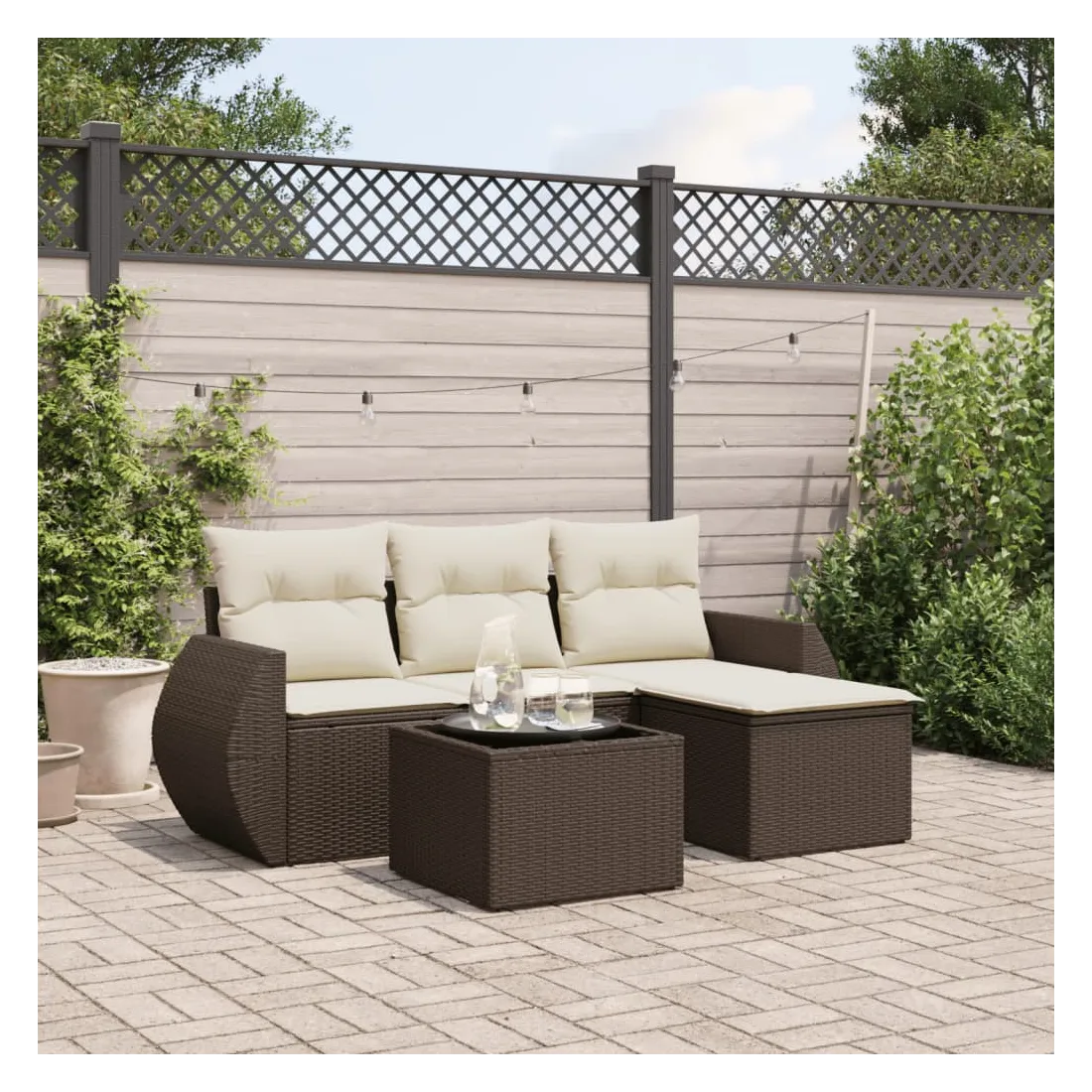 Cet ensemble de canapés de jardin est le complément parfait de votre arrière-cour, terrasse ou patio, offrant un espace confortable et accueillant pour discuter avec la famille et les amis ou simplement se détendre et profiter de l'extérieur. Matériau durable : la résine tressée, également connue sous le nom de poly rotin, est un matériau synthétique solide et nécessitant peu d'entretien qui ressemble au rotin naturel. Il est léger, facile à nettoyer et couramment utilisé pour les meubles d'extérieur en raison de sa durabilité et de ses propriétés de résistance aux intempéries.Fonction de rangement avec sac résistant à l'eau : chaque siège de jardin dispose d'un espace de rangement sous l'assise, complété par un sac résistant à l'eau pour ranger les coussins, les jouets et d'autres objets. Les sacs intérieurs sont dotés d'un couvercle et peuvent être solidement fixés aux sièges à l'aide de bandes auto-agrippantes pour plus de stabilité.Dessus en verre : le dessus de la table d'extérieur est fabriqué en verre trempé solide et durable, ce qui le rend facile à nettoyer avec un chiffon humide et ajoute une touche d'élégance à votre espace extérieur.Housse amovible et lavable : ces coussins de siège sont dotés de housses amovibles pour un lavage et un entretien faciles.Conception modulaire : cet ensemble de meubles d'extérieur a une conception modulaire, ce qui le rend complètement flexible et facile à déplacer, afin que vous puissiez créer un agencement de meubles d'extérieur personnalisé. Bon à savoir :Pour que vos meubles d'extérieur restent beaux, nous vous recommandons de les protéger avec une housse imperméable.