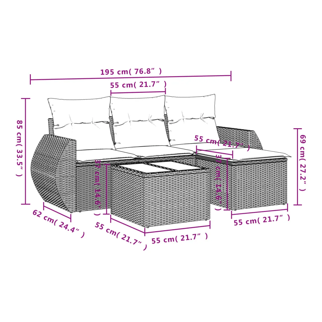 - Dimensions du coussin de siège : 55 x 55 x 3 cm (l x P x é)