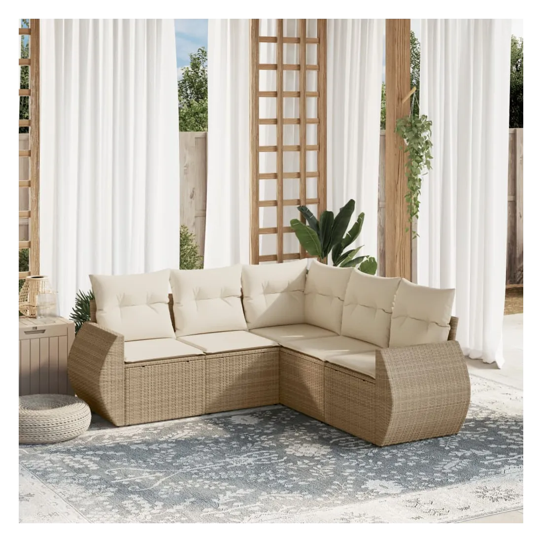 Salon de jardin avec coussins 5 pcs beige résine tressée