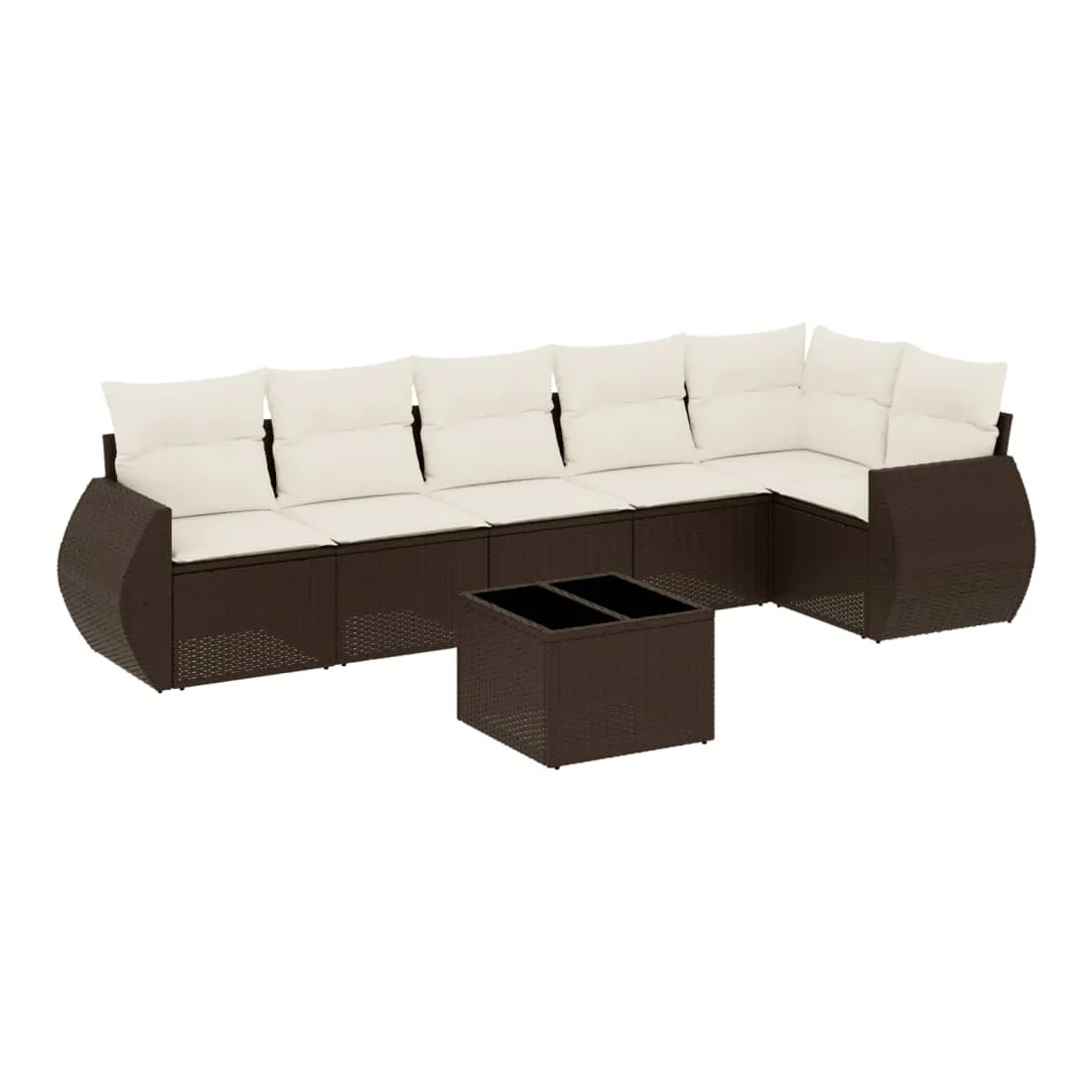 Salon de jardin avec coussins 7 pcs marron résine tressée