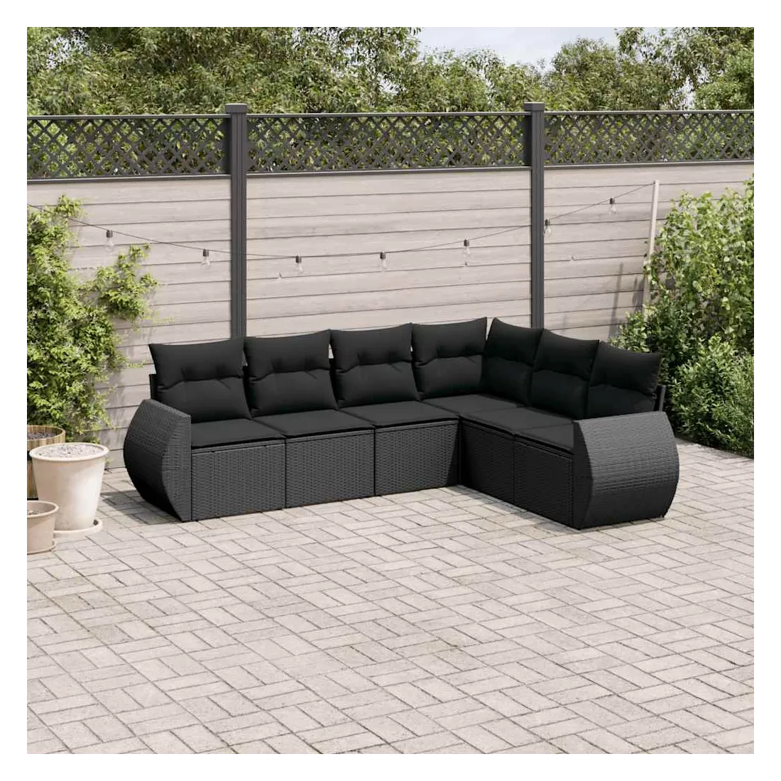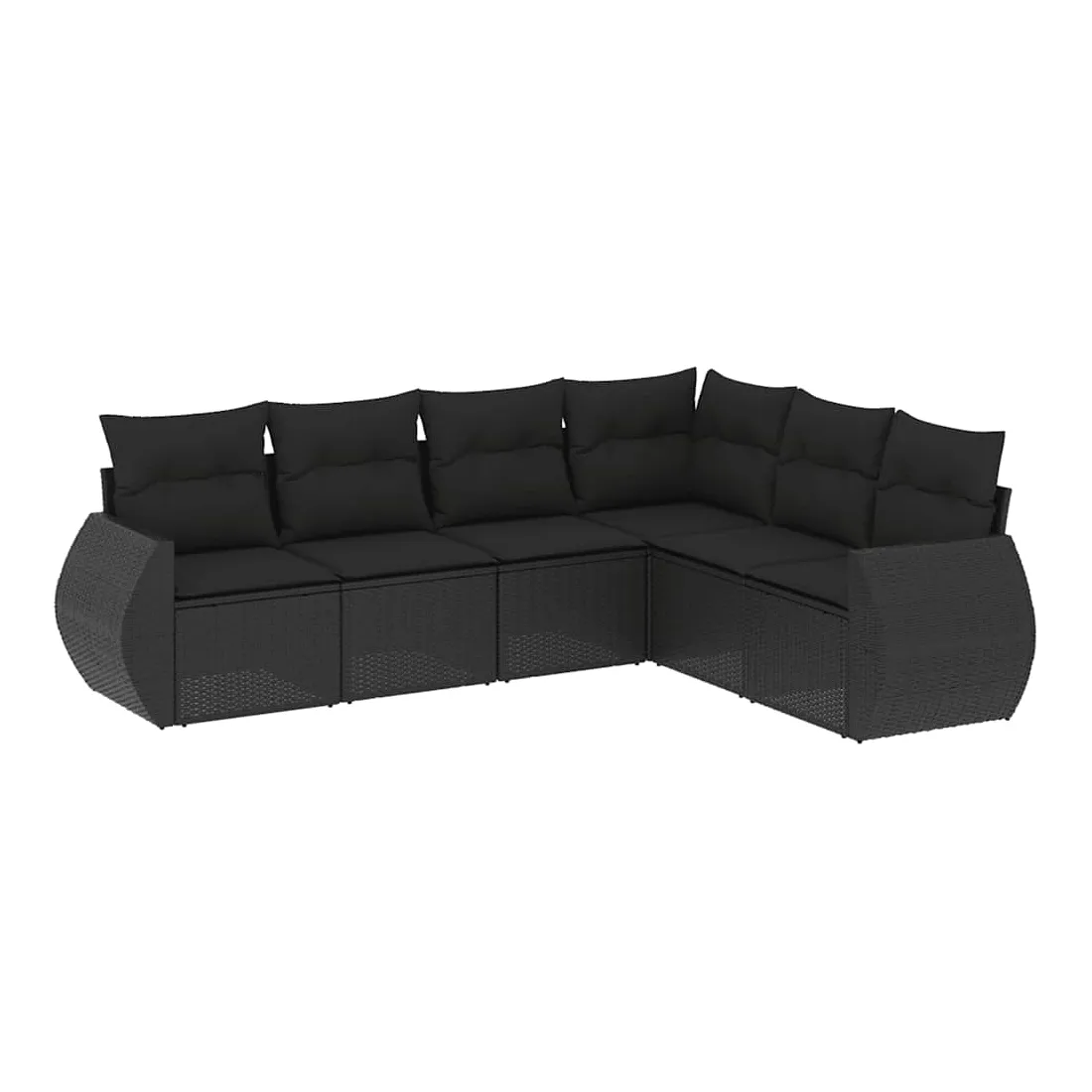 Salon de jardin 6 pcs avec coussins noir résine tressée