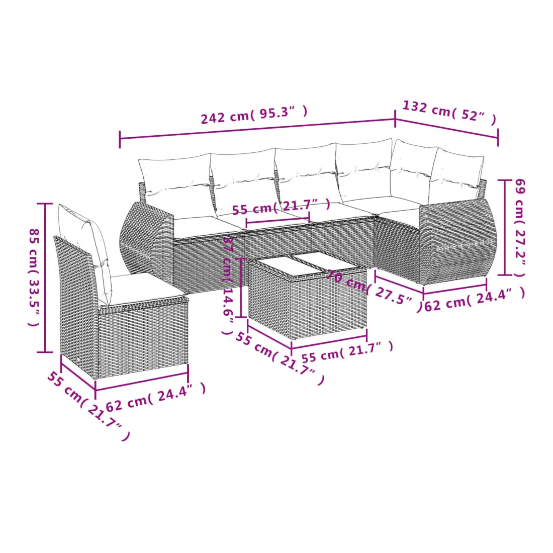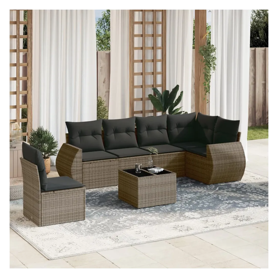 Salon de jardin avec coussins 7 pcs gris résine tressée