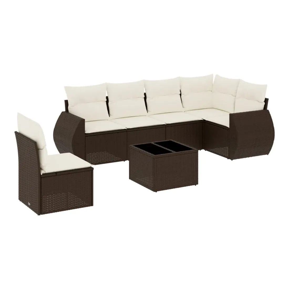 Salon de jardin avec coussins 7 pcs marron résine tressée