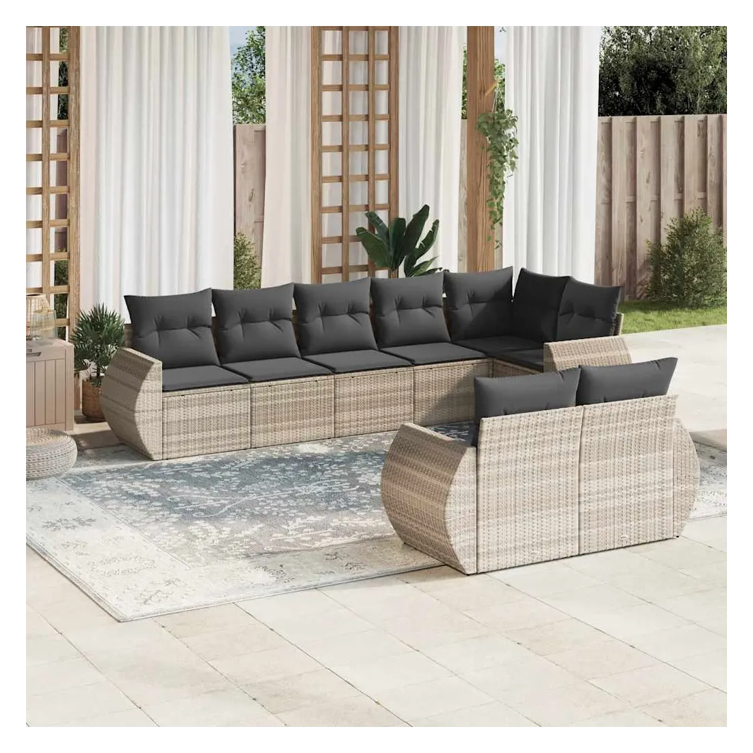 Cet ensemble de canapés de jardin est le complément parfait de votre arrière-cour, terrasse ou patio, offrant un espace confortable et accueillant pour discuter avec la famille et les amis ou simplement se détendre et profiter de l'extérieur. Matériau durable : la résine tressée, également connue sous le nom de poly rotin, est un matériau synthétique solide et nécessitant peu d'entretien qui ressemble au rotin naturel. Il est léger, facile à nettoyer et couramment utilisé pour les meubles d'extérieur en raison de sa durabilité et de ses propriétés de résistance aux intempéries.Fonction de rangement avec sac résistant à l'eau : chaque siège de jardin dispose d'un espace de rangement sous l'assise, complété par un sac résistant à l'eau pour ranger les coussins, les jouets et d'autres objets. Les sacs intérieurs sont dotés d'un couvercle et peuvent être solidement fixés aux sièges à l'aide de bandes auto-agrippantes pour plus de stabilité.Housse amovible et lavable : ces coussins de siège sont dotés de housses amovibles pour un lavage et un entretien faciles.Conception modulaire : cet ensemble de meubles d'extérieur a une conception modulaire, ce qui le rend complètement flexible et facile à déplacer, afin que vous puissiez créer un agencement de meubles d'extérieur personnalisé. Bon à savoir :Pour que vos meubles d'extérieur restent beaux, nous vous recommandons de les protéger avec une housse imperméable.