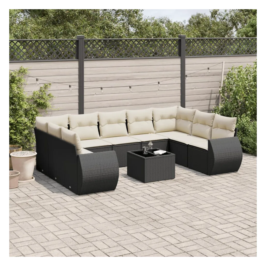 Salon de jardin 10 pcs avec coussins noir résine tressée