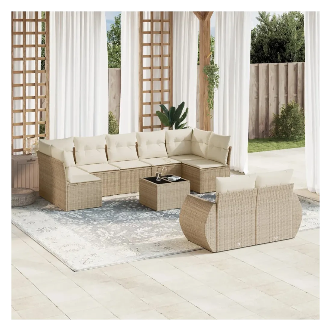 Salon de jardin avec coussins 10 pcs beige résine tressée