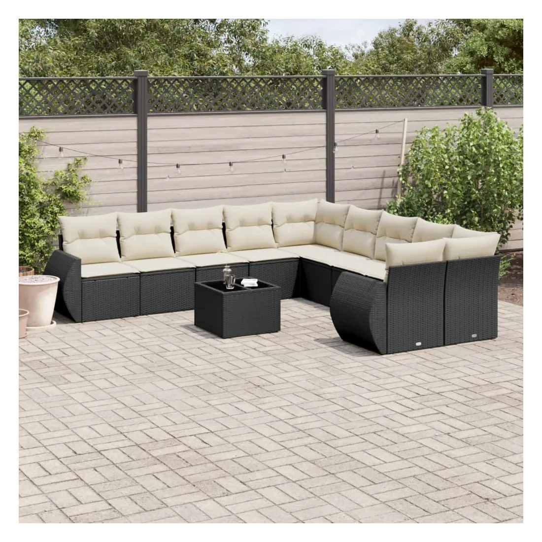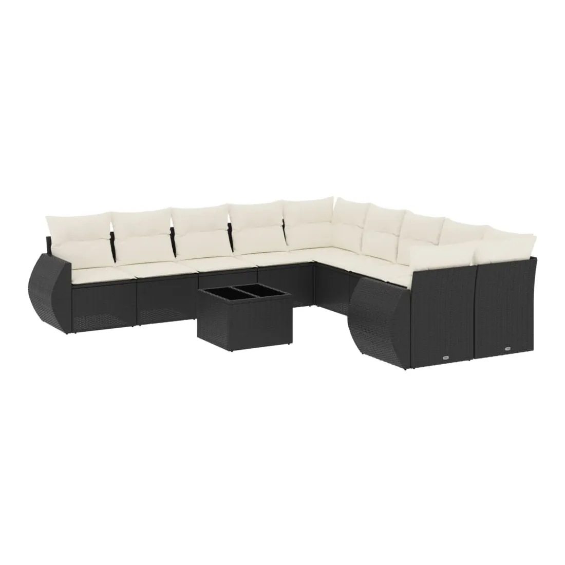 Salon de jardin 11 pcs avec coussins noir résine tressée