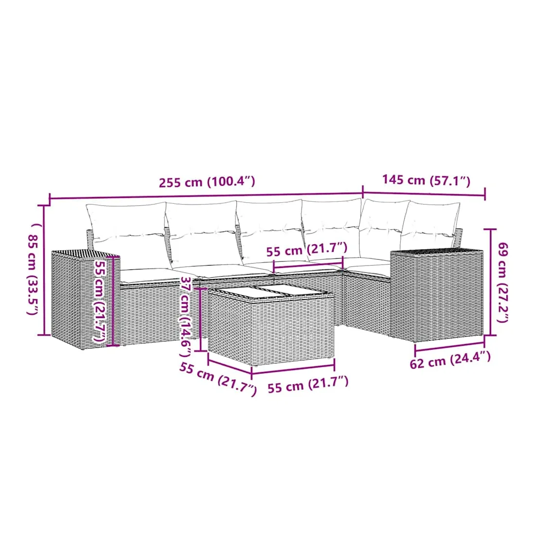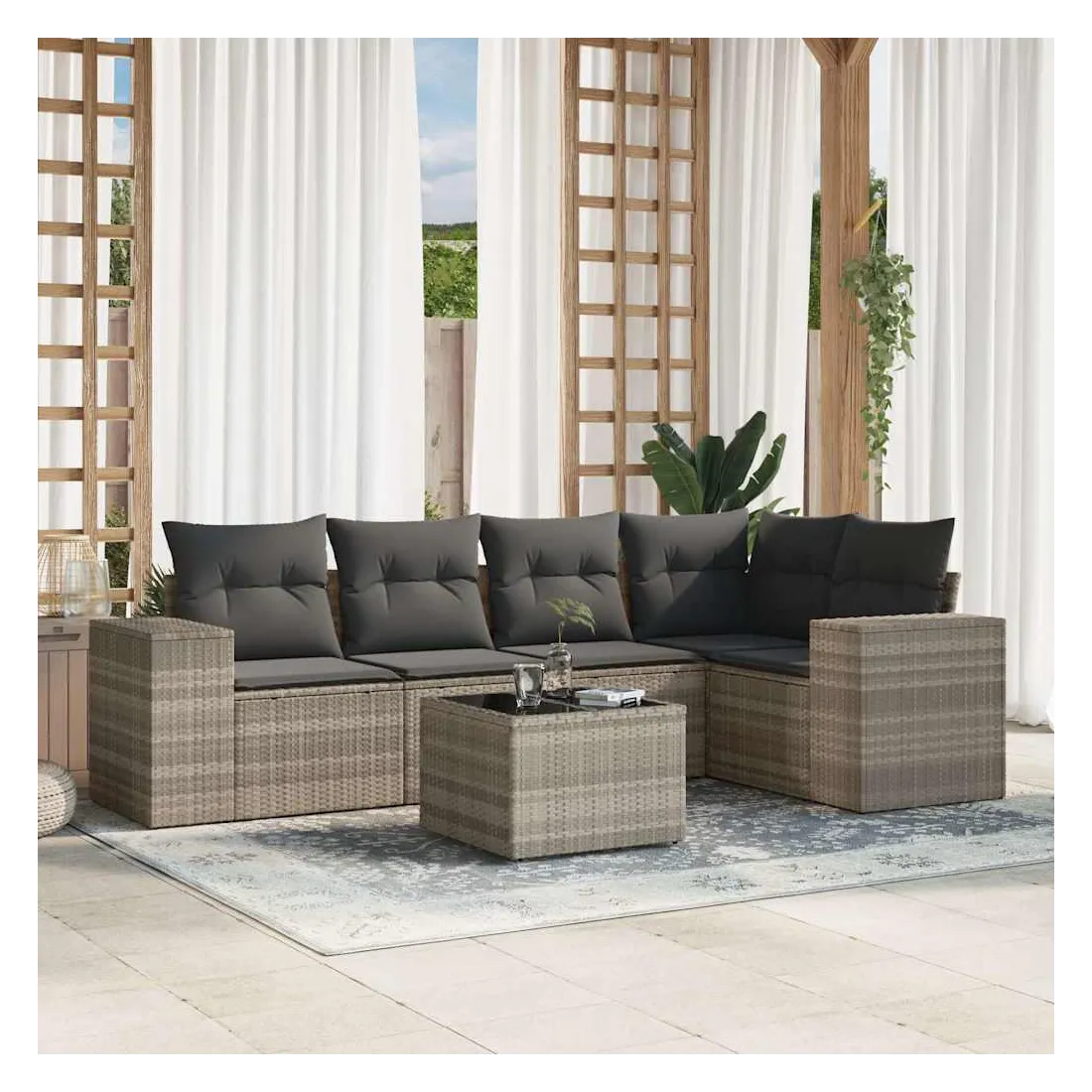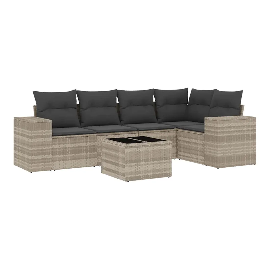 Salon de jardin 6 pcs avec coussins gris clair résine tressée