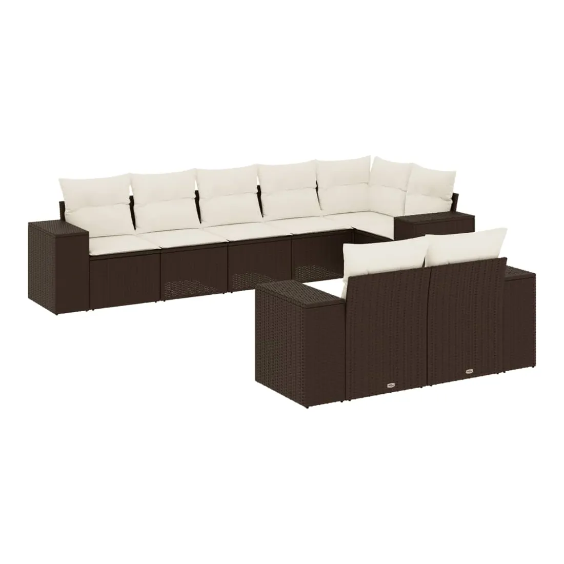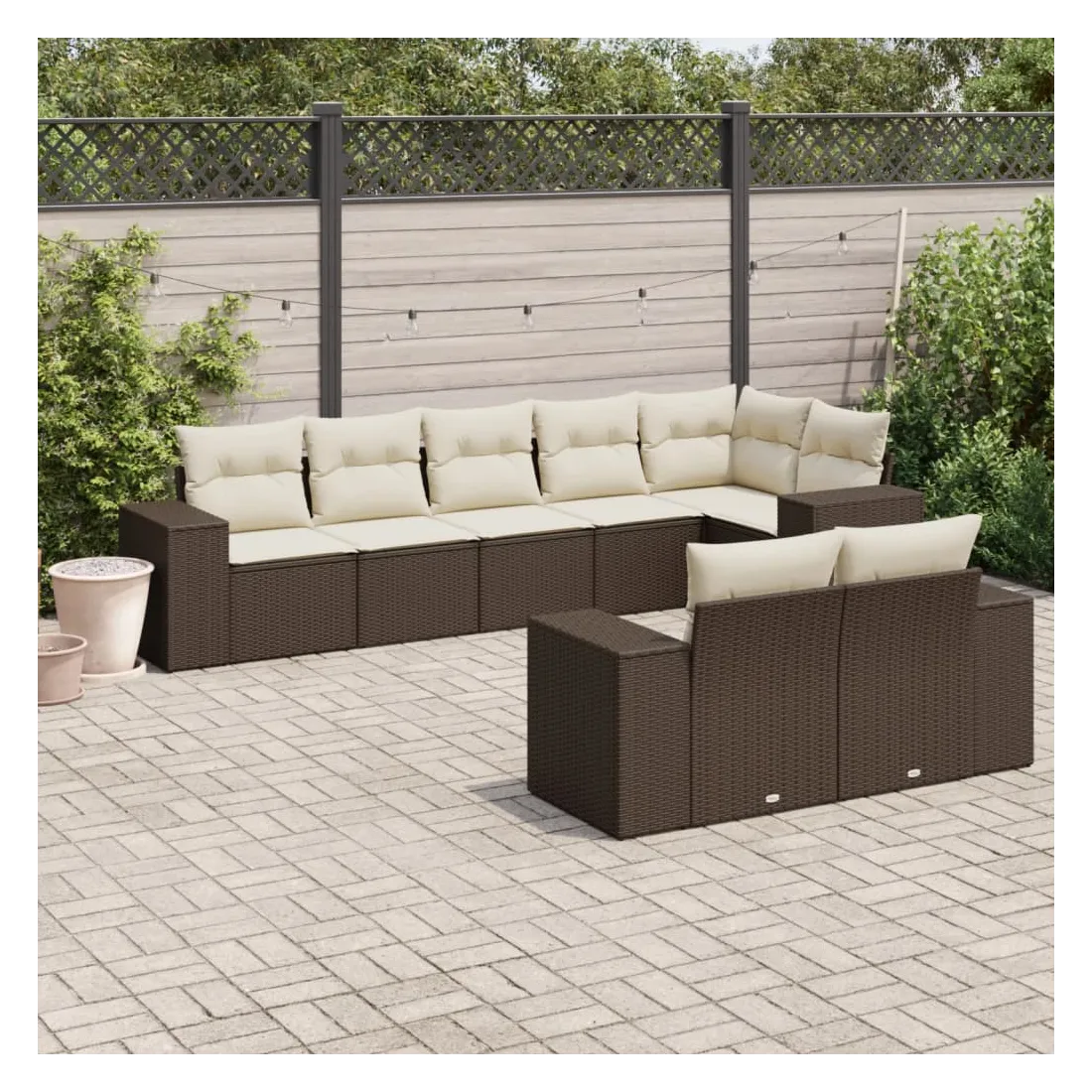 Salon de jardin 8 pcs avec coussins marron résine tressée