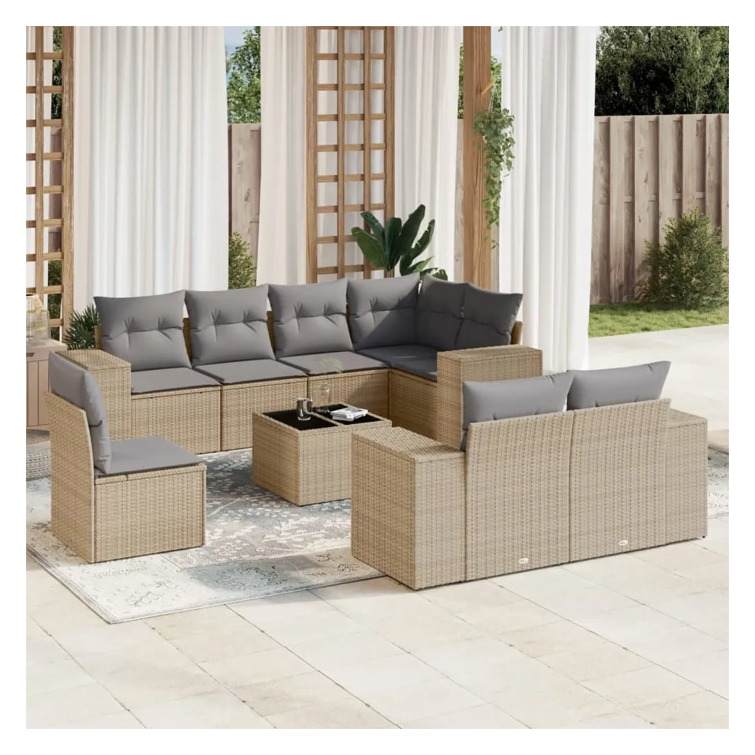 Cet ensemble de canapés de jardin est le complément parfait de votre arrière-cour, terrasse ou patio, offrant un espace confortable et accueillant pour discuter avec la famille et les amis ou simplement se détendre et profiter de l'extérieur. Matériau durable : la résine tressée, également connue sous le nom de poly rotin, est un matériau synthétique solide et nécessitant peu d'entretien qui ressemble au rotin naturel. Il est léger, facile à nettoyer et couramment utilisé pour les meubles d'extérieur en raison de sa durabilité et de ses propriétés de résistance aux intempéries.Fonction de rangement avec sac résistant à l'eau : le mobilier de jardin dispose d'un espace de rangement sous l'assise, complété par un sac résistant à l'eau pour ranger coussins, jouets et autres objets. Le sac intérieur peut être solidement fixé au mobilier d'extérieur grâce à des attaches auto-agrippantes pour plus de stabilité.Dessus en verre : le dessus de la table d'extérieur est fabriqué en verre trempé solide et durable, ce qui le rend facile à nettoyer avec un chiffon humide et ajoute une touche d'élégance à votre espace extérieur.Housse amovible et lavable : ces coussins de siège sont dotés de housses amovibles pour un lavage et un entretien faciles.Conception modulaire : cet ensemble de meubles d'extérieur a une conception modulaire, ce qui le rend complètement flexible et facile à déplacer, afin que vous puissiez créer un agencement de meubles d'extérieur personnalisé. Bon à savoir :Pour que vos meubles d'extérieur restent beaux, nous vous recommandons de les protéger avec une housse imperméable.