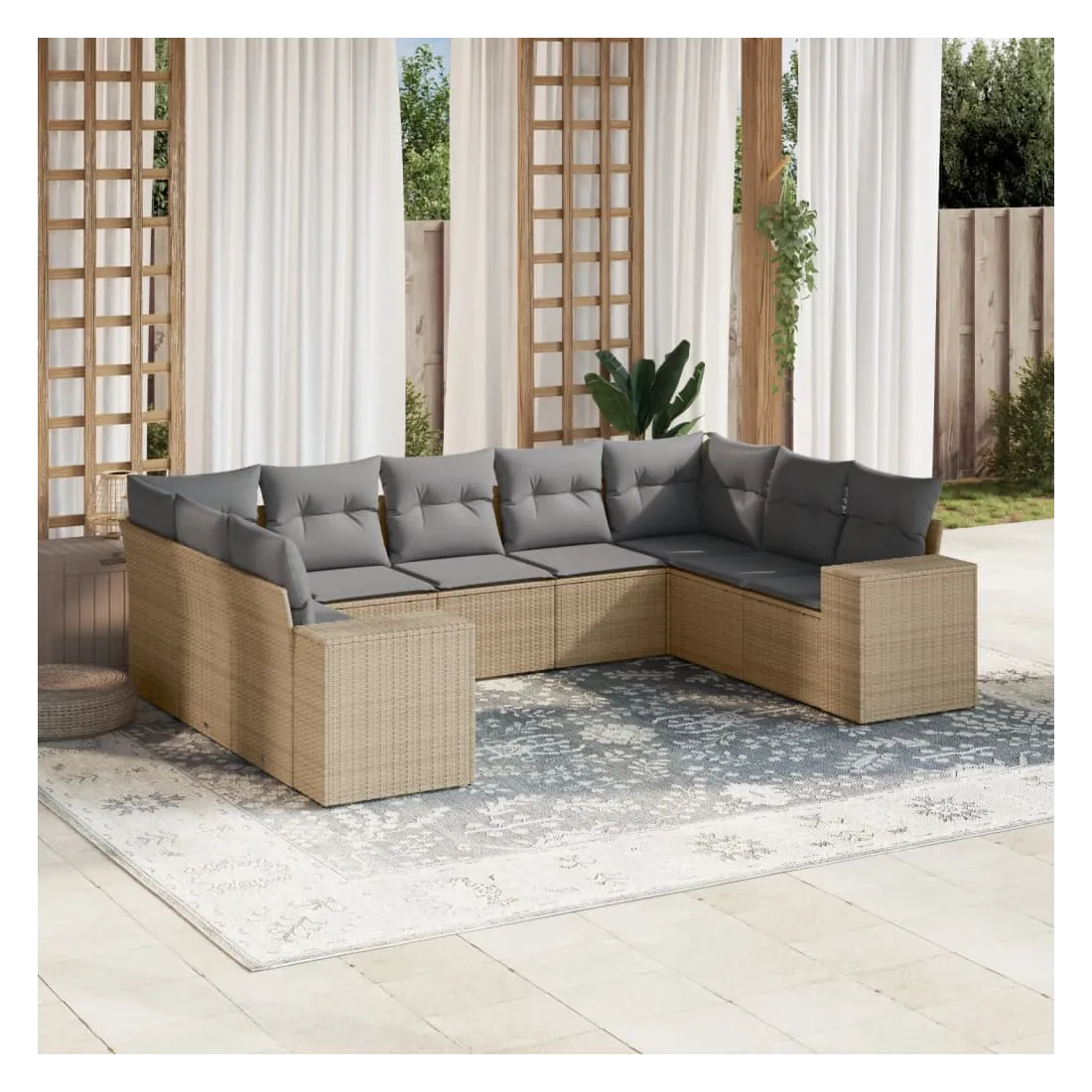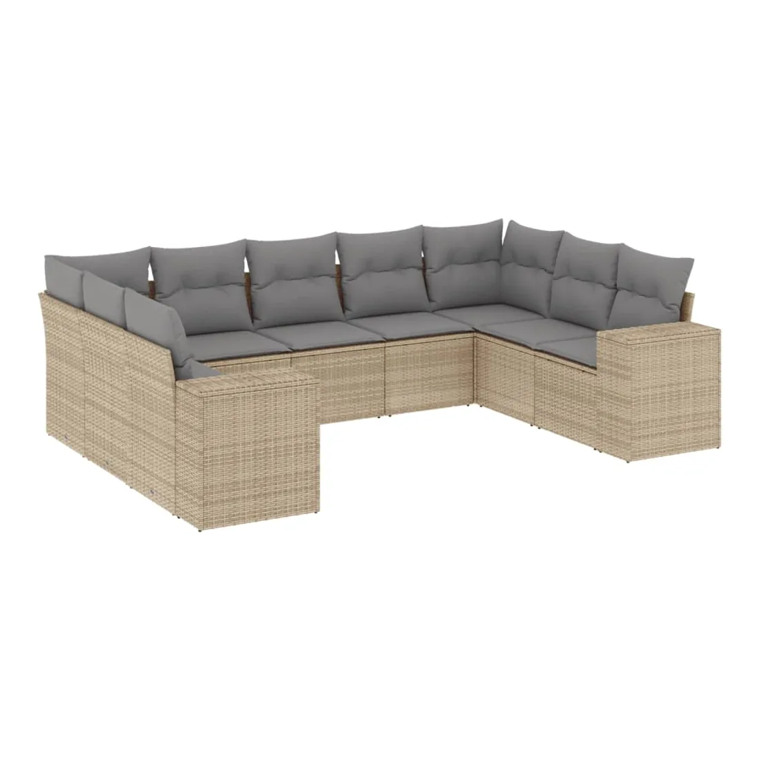Salon de jardin avec coussins 9 pcs beige résine tressée