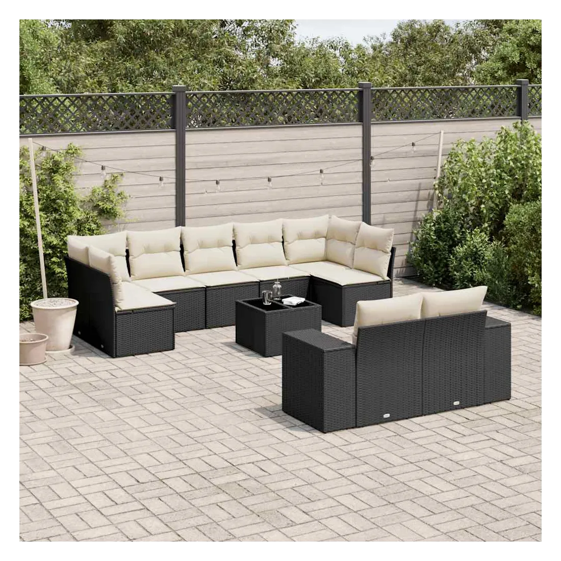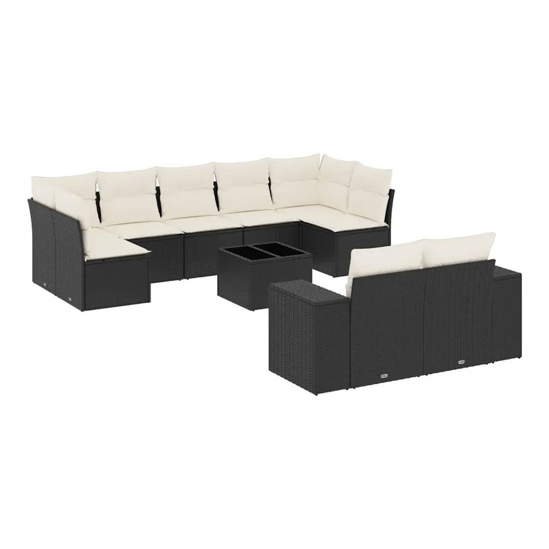 Salon de jardin 10 pcs avec coussins noir résine tressée
