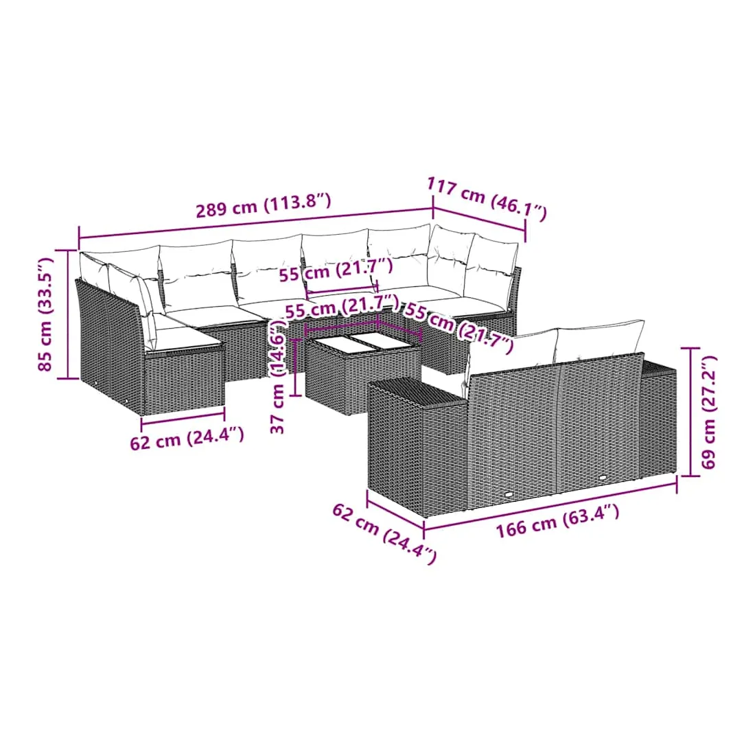 • 9 x coussin d'assise avec housse amovible et lavable