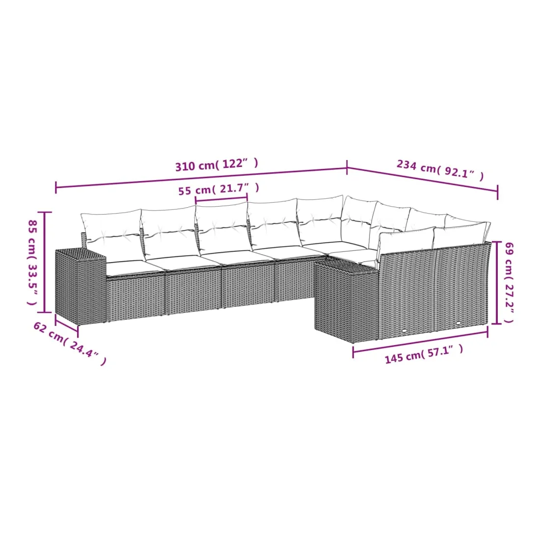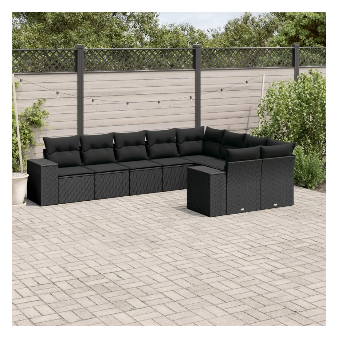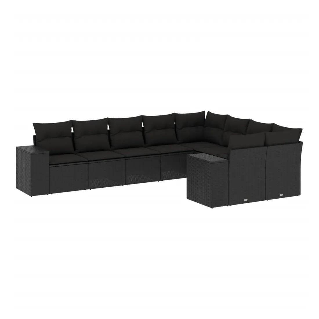 Salon de jardin 9 pcs avec coussins noir résine tressée