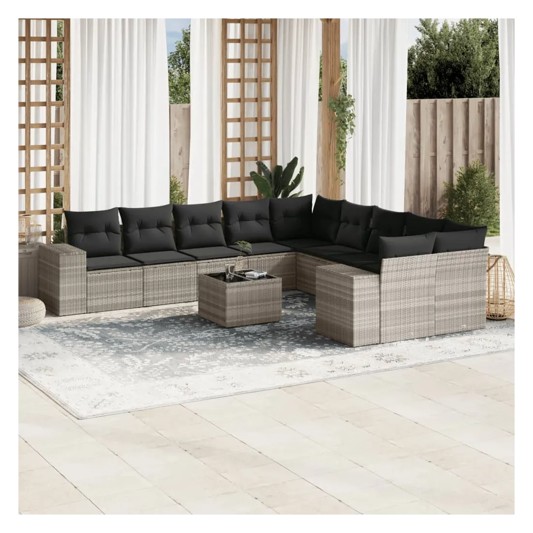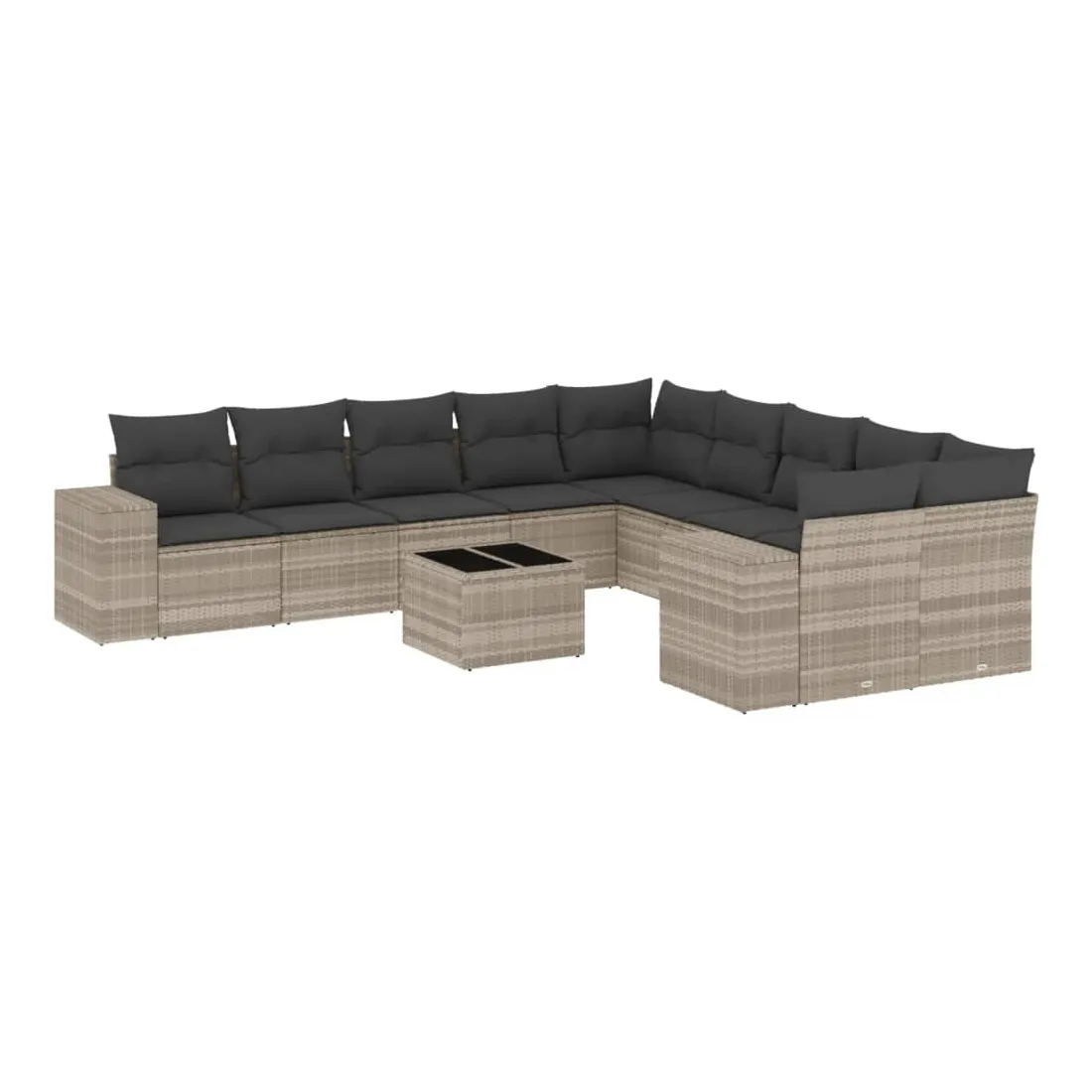 Salon de jardin 11 pcs avec coussins gris clair résine tressée