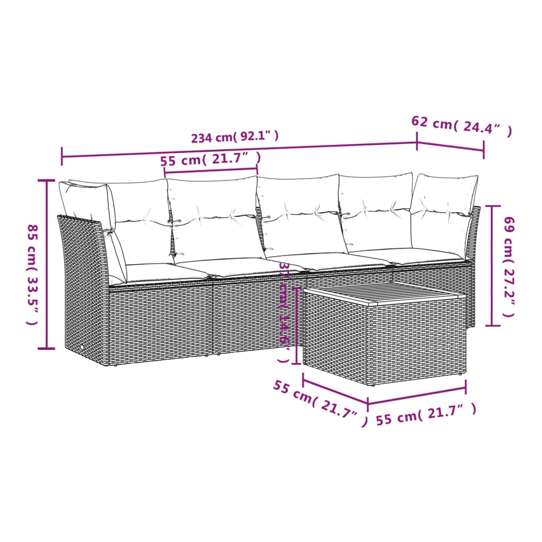 - Dimensions du coussin de siège : 55 x 55 x 3 cm (l x P x é)