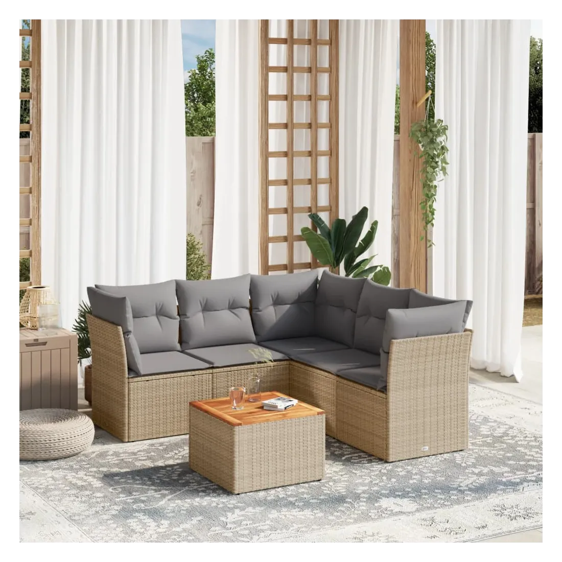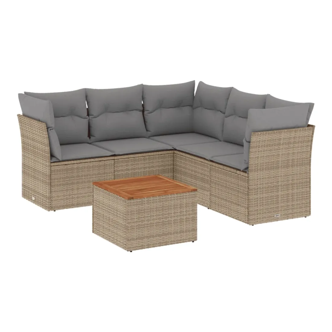 Salon de jardin avec coussins 6pcs mélange beige résine tressée
