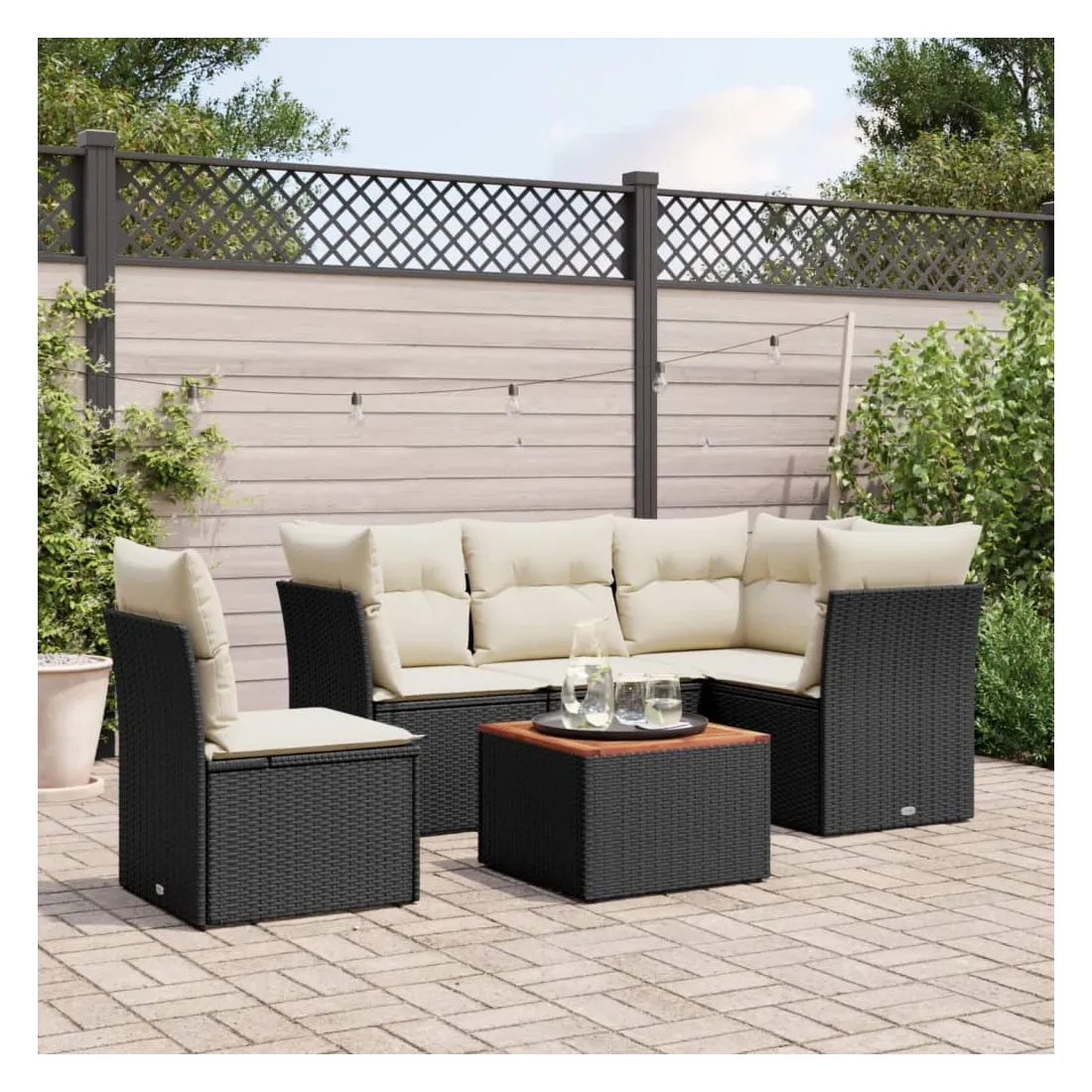 Salon de jardin 6 pcs avec coussins noir résine tressée