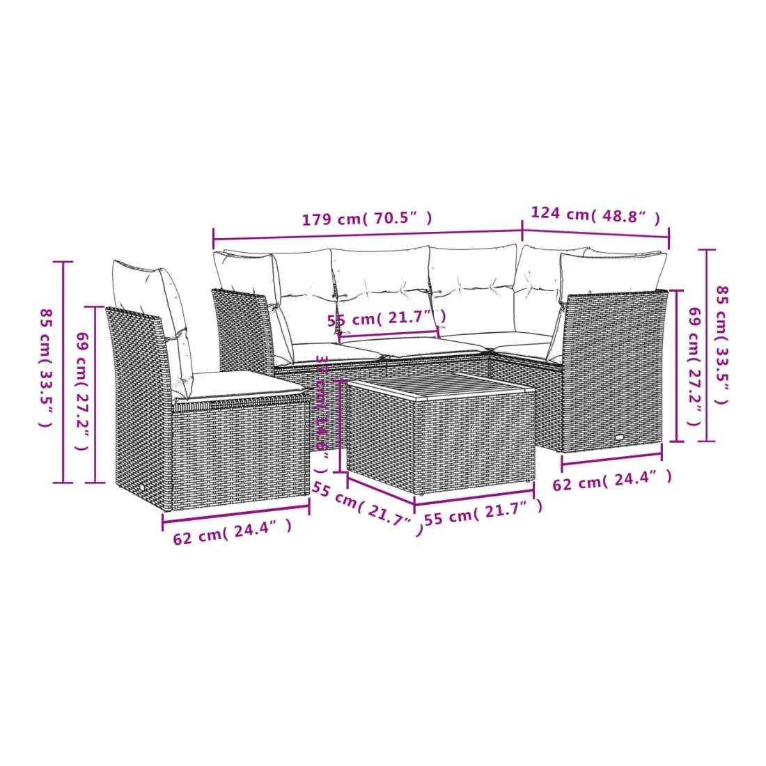 Cet ensemble de canapés de jardin est le complément parfait de votre arrière-cour, terrasse ou patio, offrant un espace confortable et accueillant pour discuter avec la famille et les amis ou simplement se détendre et profiter de l'extérieur. Matériau durable : la résine tressée, également connue sous le nom de poly rotin, est un matériau synthétique solide et nécessitant peu d'entretien qui ressemble au rotin naturel. Il est léger, facile à nettoyer et couramment utilisé pour les meubles d'extérieur en raison de sa durabilité et de ses propriétés de résistance aux intempéries.Fonction de rangement avec sac résistant à l'eau : chaque siège de jardin dispose d'un espace de rangement sous l'assise, complété par un sac résistant à l'eau pour ranger les coussins, les jouets et d'autres objets. Les sacs intérieurs sont dotés d'un couvercle et peuvent être solidement fixés aux sièges à l'aide de bandes auto-agrippantes pour plus de stabilité.Dessus stable et facile à nettoyer : cette table de jardin a un dessus en bois d'acacia robuste, durable et facile à nettoyer avec un chiffon humide.Housse amovible et lavable : ces coussins de siège sont dotés de housses amovibles pour un lavage et un entretien faciles.Conception modulaire : cet ensemble de meubles d'extérieur a une conception modulaire, ce qui le rend complètement flexible et facile à déplacer, afin que vous puissiez créer un agencement de meubles d'extérieur personnalisé. Bon à savoir :Pour que vos meubles d'extérieur restent beaux, nous vous recommandons de les protéger avec une housse imperméable.
