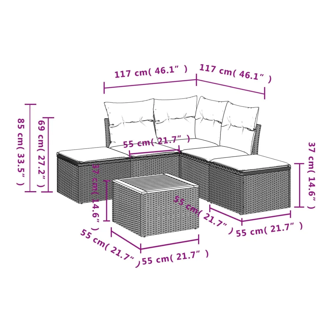 Cet ensemble de canapés de jardin est le complément parfait de votre arrière-cour, terrasse ou patio, offrant un espace confortable et accueillant pour discuter avec la famille et les amis ou simplement se détendre et profiter de l'extérieur. Matériau durable : la résine tressée, également connue sous le nom de poly rotin, est un matériau synthétique solide et nécessitant peu d'entretien qui ressemble au rotin naturel. Il est léger, facile à nettoyer et couramment utilisé pour les meubles d'extérieur en raison de sa durabilité et de ses propriétés de résistance aux intempéries.Fonction de rangement avec sac résistant à l'eau : chaque siège de jardin dispose d'un espace de rangement sous l'assise, complété par un sac résistant à l'eau pour ranger les coussins, les jouets et d'autres objets. Les sacs intérieurs sont dotés d'un couvercle et peuvent être solidement fixés aux sièges à l'aide de bandes auto-agrippantes pour plus de stabilité.Dessus stable et facile à nettoyer : cette table de jardin a un dessus en bois d'acacia robuste, durable et facile à nettoyer avec un chiffon humide.Pouf polyvalent : le tabouret est polyvalent, servant de repose-pieds confortable lorsque vous vous prélassez sur le canapé ou de siège supplémentaire dans votre jardin.Conception modulaire : cet ensemble de meubles d'extérieur a une conception modulaire, ce qui le rend complètement flexible et facile à déplacer, afin que vous puissiez créer un agencement de meubles d'extérieur personnalisé. Bon à savoir :Pour que vos meubles d'extérieur restent beaux, nous vous recommandons de les protéger avec une housse imperméable.