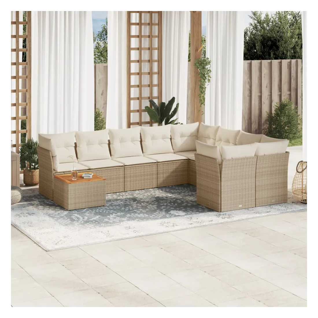 Cet ensemble de canapés de jardin est le complément parfait de votre arrière-cour, terrasse ou patio, offrant un espace confortable et accueillant pour discuter avec la famille et les amis ou simplement se détendre et profiter de l'extérieur. Matériau durable : la résine tressée, également connue sous le nom de poly rotin, est un matériau synthétique solide et nécessitant peu d'entretien qui ressemble au rotin naturel. Il est léger, facile à nettoyer et couramment utilisé pour les meubles d'extérieur en raison de sa durabilité et de ses propriétés de résistance aux intempéries.Fonction de rangement avec sac résistant à l'eau : chaque siège de jardin dispose d'un espace de rangement sous l'assise, complété par un sac résistant à l'eau pour ranger les coussins, les jouets et d'autres objets. Les sacs intérieurs sont dotés d'un couvercle et peuvent être solidement fixés aux sièges à l'aide de bandes auto-agrippantes pour plus de stabilité.Dessus stable et facile à nettoyer : cette table de jardin a un dessus en bois d'acacia robuste, durable et facile à nettoyer avec un chiffon humide.Housse amovible et lavable : ces coussins de siège sont dotés de housses amovibles pour un lavage et un entretien faciles.Conception modulaire : cet ensemble de meubles d'extérieur a une conception modulaire, ce qui le rend complètement flexible et facile à déplacer, afin que vous puissiez créer un agencement de meubles d'extérieur personnalisé. Bon à savoir :Pour que vos meubles d'extérieur restent beaux, nous vous recommandons de les protéger avec une housse imperméable.