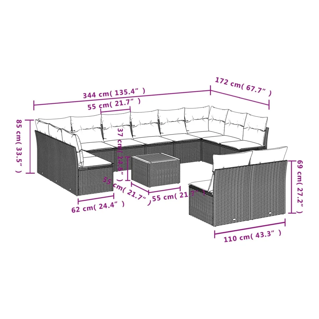 Salon de jardin et coussins 13 pcs mélange beige résine tressée