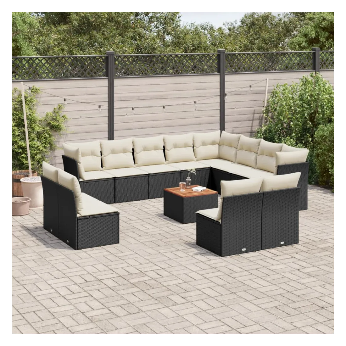 Cet ensemble de canapés de jardin est le complément parfait de votre arrière-cour, terrasse ou patio, offrant un espace confortable et accueillant pour discuter avec la famille et les amis ou simplement se détendre et profiter de l'extérieur. Matériau durable : la résine tressée, également connue sous le nom de poly rotin, est un matériau synthétique solide et nécessitant peu d'entretien qui ressemble au rotin naturel. Il est léger, facile à nettoyer et couramment utilisé pour les meubles d'extérieur en raison de sa durabilité et de ses propriétés de résistance aux intempéries.Fonction de rangement avec sac résistant à l'eau : chaque siège de jardin dispose d'un espace de rangement sous l'assise, complété par un sac résistant à l'eau pour ranger les coussins, les jouets et d'autres objets. Les sacs intérieurs sont dotés d'un couvercle et peuvent être solidement fixés aux sièges à l'aide de bandes auto-agrippantes pour plus de stabilité.Dessus stable et facile à nettoyer : cette table de jardin a un dessus en bois d'acacia robuste, durable et facile à nettoyer avec un chiffon humide.Housse amovible et lavable : ces coussins de siège sont dotés de housses amovibles pour un lavage et un entretien faciles.Conception modulaire : cet ensemble de meubles d'extérieur a une conception modulaire, ce qui le rend complètement flexible et facile à déplacer, afin que vous puissiez créer un agencement de meubles d'extérieur personnalisé. Bon à savoir :Pour que vos meubles d'extérieur restent beaux, nous vous recommandons de les protéger avec une housse imperméable.