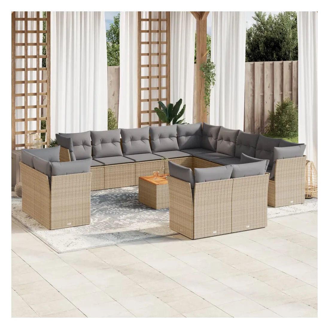 vidaXLCet ensemble de canapés de jardin est le complément parfait de votre arrière-cour, terrasse ou patio, offrant un espace confortable et accueillant pour discuter avec la famille et les amis ou simplement se détendre et profiter de l'extérieur. Matériau durable : la résine tressée, également connue sous le nom de poly rotin, est un matériau synthétique solide et nécessitant peu d'entretien qui ressemble au rotin naturel. Il est léger, facile à nettoyer et couramment utilisé pour les meubles d'extérieur en raison de sa durabilité et de ses propriétés de résistance aux intempéries.Fonction de rangement avec sac résistant à l'eau : chaque siège de jardin dispose d'un espace de rangement sous l'assise, complété par un sac résistant à l'eau pour ranger les coussins, les jouets et d'autres objets. Les sacs intérieurs sont dotés d'un couvercle et peuvent être solidement fixés aux sièges à l'aide de bandes auto-agrippantes pour plus de stabilité.Dessus stable et facile à nettoyer : cette table de jardin a un dessus en bois d'acacia robuste, durable et facile à nettoyer avec un chiffon humide.Housse amovible et lavable : ces coussins de siège sont dotés de housses amovibles pour un lavage et un entretien faciles.Conception modulaire : cet ensemble de meubles d'extérieur a une conception modulaire, ce qui le rend complètement flexible et facile à déplacer, afin que vous puissiez créer un agencement de meubles d'extérieur personnalisé. Bon à savoir :Pour que vos meubles d'extérieur restent beaux, nous vous recommandons de les protéger avec une housse imperméable.