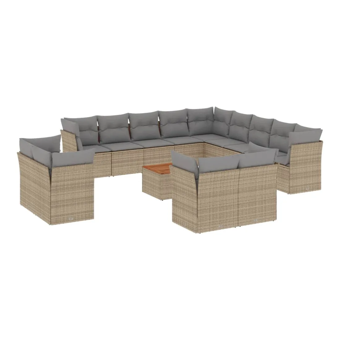 Salon de jardin et coussins 14 pcs mélange beige résine tressée