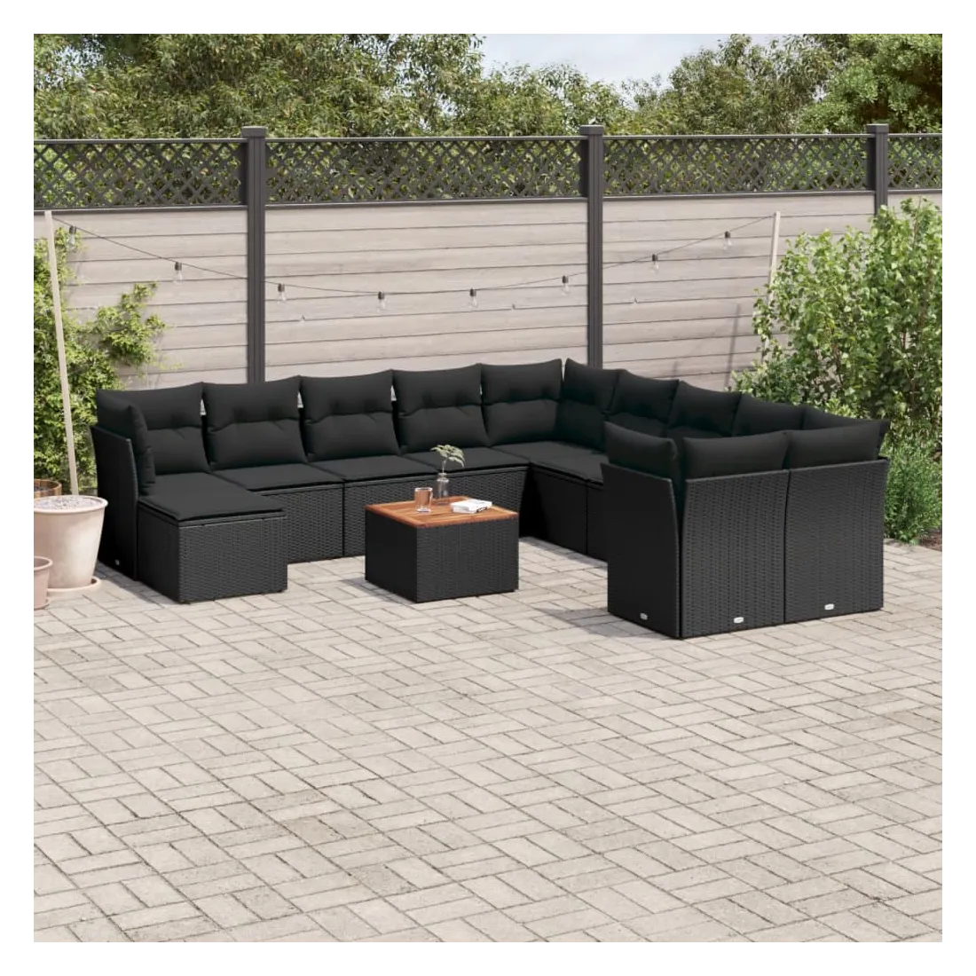 Cet ensemble de canapés de jardin est le complément parfait de votre arrière-cour, terrasse ou patio, offrant un espace confortable et accueillant pour discuter avec la famille et les amis ou simplement se détendre et profiter de l'extérieur. Matériau durable : la résine tressée, également connue sous le nom de poly rotin, est un matériau synthétique solide et nécessitant peu d'entretien qui ressemble au rotin naturel. Il est léger, facile à nettoyer et couramment utilisé pour les meubles d'extérieur en raison de sa durabilité et de ses propriétés de résistance aux intempéries.Fonction de rangement avec sac résistant à l'eau : chaque siège de jardin dispose d'un espace de rangement sous l'assise, complété par un sac résistant à l'eau pour ranger les coussins, les jouets et d'autres objets. Les sacs intérieurs sont dotés d'un couvercle et peuvent être solidement fixés aux sièges à l'aide de bandes auto-agrippantes pour plus de stabilité.Dessus stable et facile à nettoyer : cette table de jardin a un dessus en bois d'acacia robuste, durable et facile à nettoyer avec un chiffon humide.Pouf polyvalent : le tabouret est polyvalent, servant de repose-pieds confortable lorsque vous vous prélassez sur le canapé ou de siège supplémentaire dans votre jardin.Conception modulaire : cet ensemble de meubles d'extérieur a une conception modulaire, ce qui le rend complètement flexible et facile à déplacer, afin que vous puissiez créer un agencement de meubles d'extérieur personnalisé. Bon à savoir :Pour que vos meubles d'extérieur restent beaux, nous vous recommandons de les protéger avec une housse imperméable.
