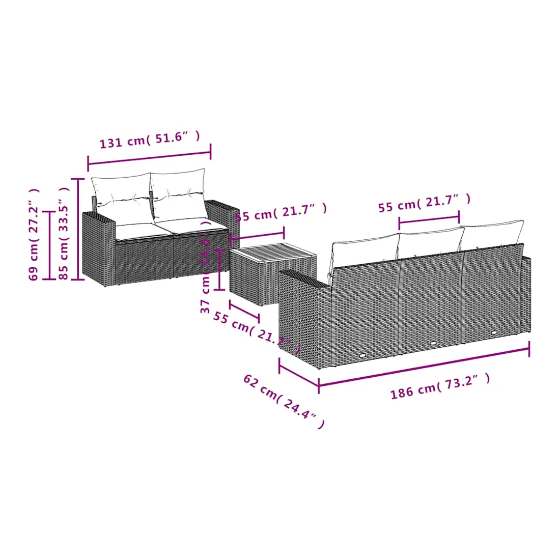 - Dimensions : 55 x 55 x 37 cm (L x l x H)