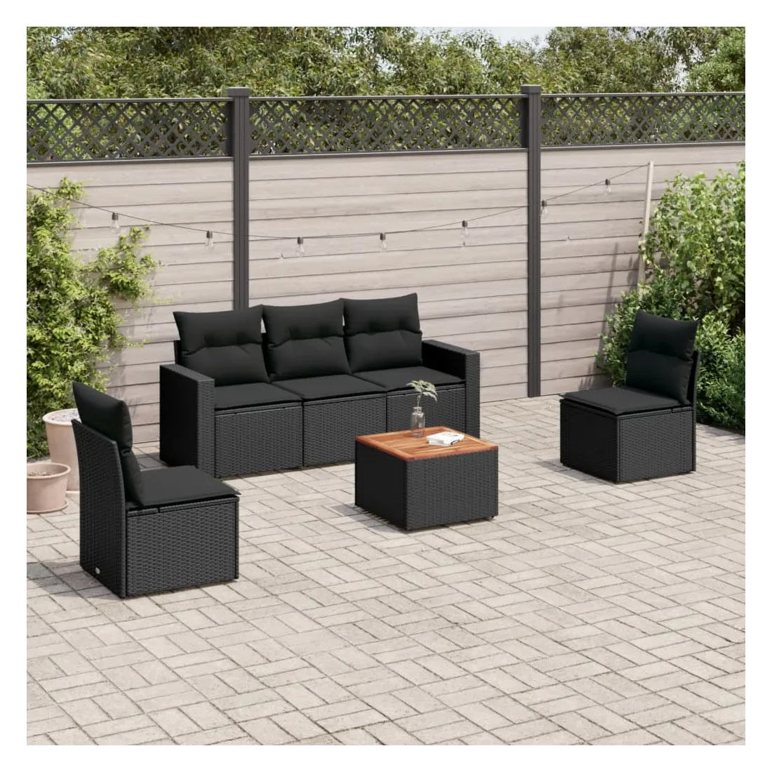 Cet ensemble de canapés de jardin est le complément parfait de votre arrière-cour, terrasse ou patio, offrant un espace confortable et accueillant pour discuter avec la famille et les amis ou simplement se détendre et profiter de l'extérieur. Matériau durable : la résine tressée, également connue sous le nom de poly rotin, est un matériau synthétique solide et nécessitant peu d'entretien qui ressemble au rotin naturel. Il est léger, facile à nettoyer et couramment utilisé pour les meubles d'extérieur en raison de sa durabilité et de ses propriétés de résistance aux intempéries.Fonction de rangement avec sac résistant à l'eau : chaque siège de jardin dispose d'un espace de rangement sous l'assise, complété par un sac résistant à l'eau pour ranger les coussins, les jouets et d'autres objets. Les sacs intérieurs sont dotés d'un couvercle et peuvent être solidement fixés aux sièges à l'aide de bandes auto-agrippantes pour plus de stabilité.Dessus stable et facile à nettoyer : cette table de jardin a un dessus en bois d'acacia robuste, durable et facile à nettoyer avec un chiffon humide.Housse amovible et lavable : ces coussins de siège sont dotés de housses amovibles pour un lavage et un entretien faciles.Conception modulaire : cet ensemble de meubles d'extérieur a une conception modulaire, ce qui le rend complètement flexible et facile à déplacer, afin que vous puissiez créer un agencement de meubles d'extérieur personnalisé. Bon à savoir :Pour que vos meubles d'extérieur restent beaux, nous vous recommandons de les protéger avec une housse imperméable.