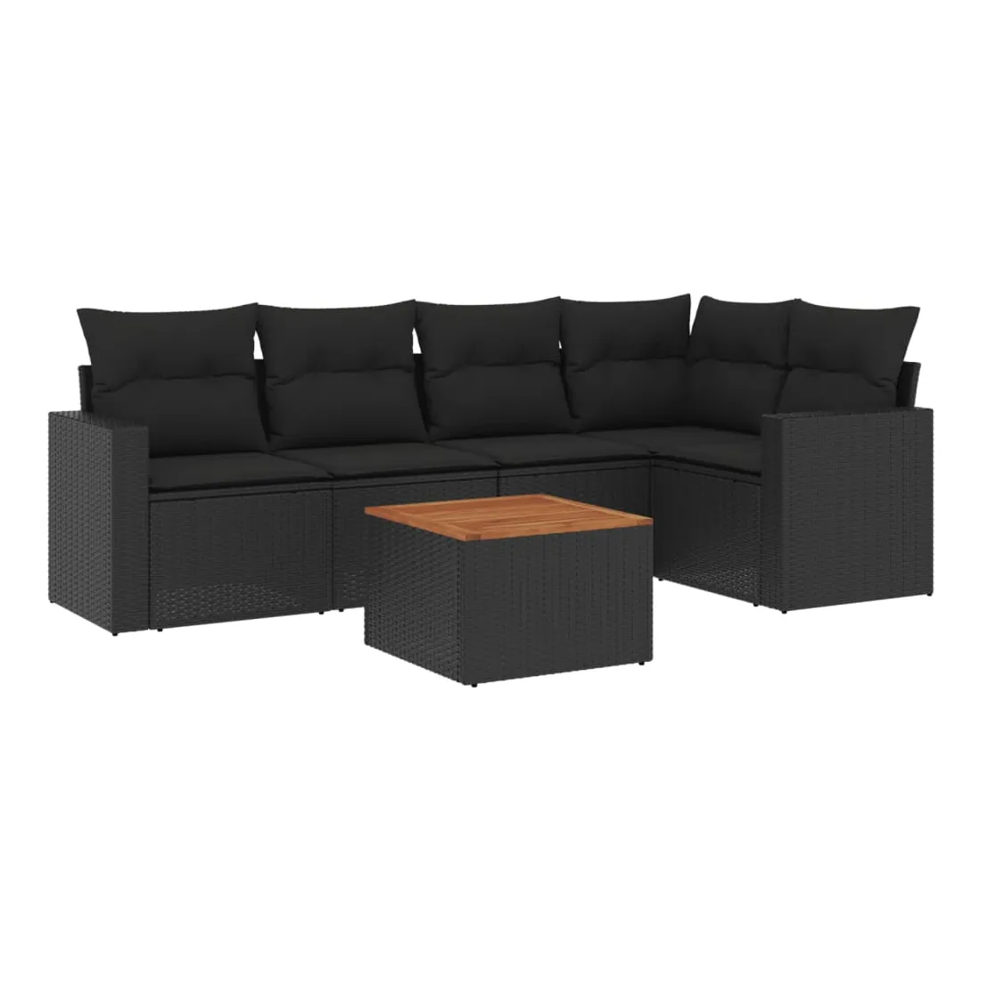 Salon de jardin 6 pcs avec coussins noir résine tressée