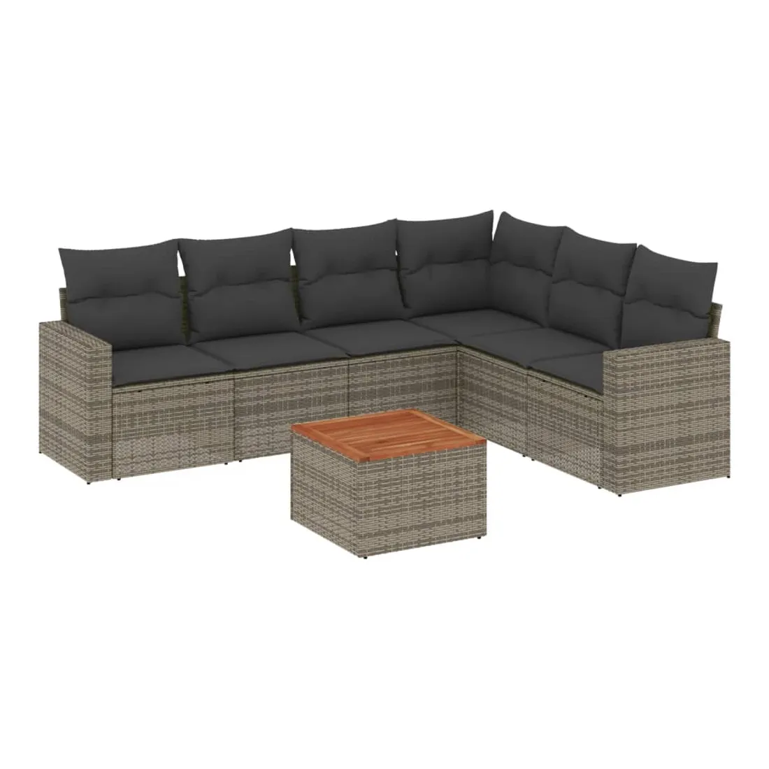 Salon de jardin avec coussins 7 pcs gris résine tressée