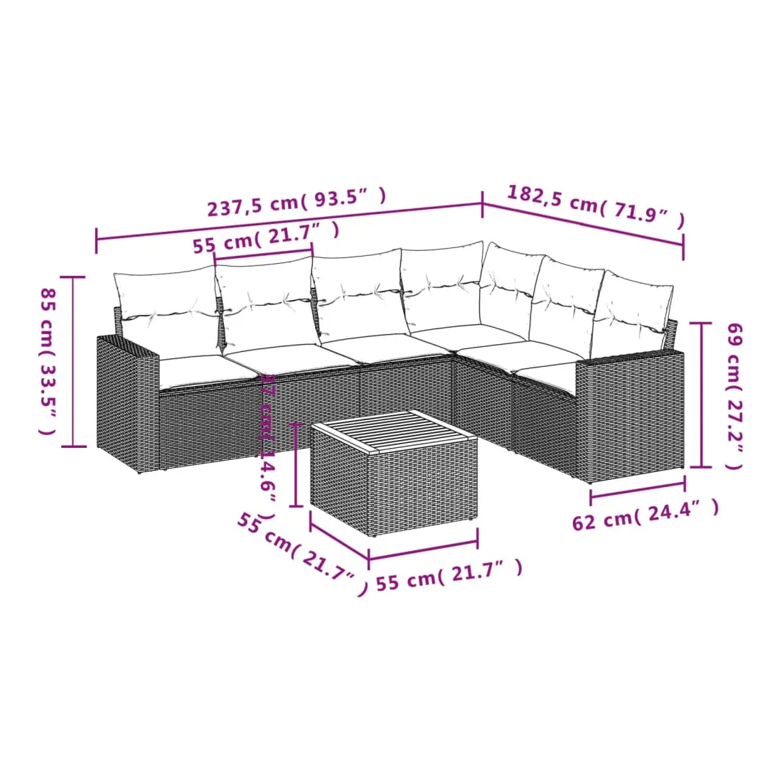 • Dimensions du coussin de siège : 55 x 55 x 3 cm (l x P x é)