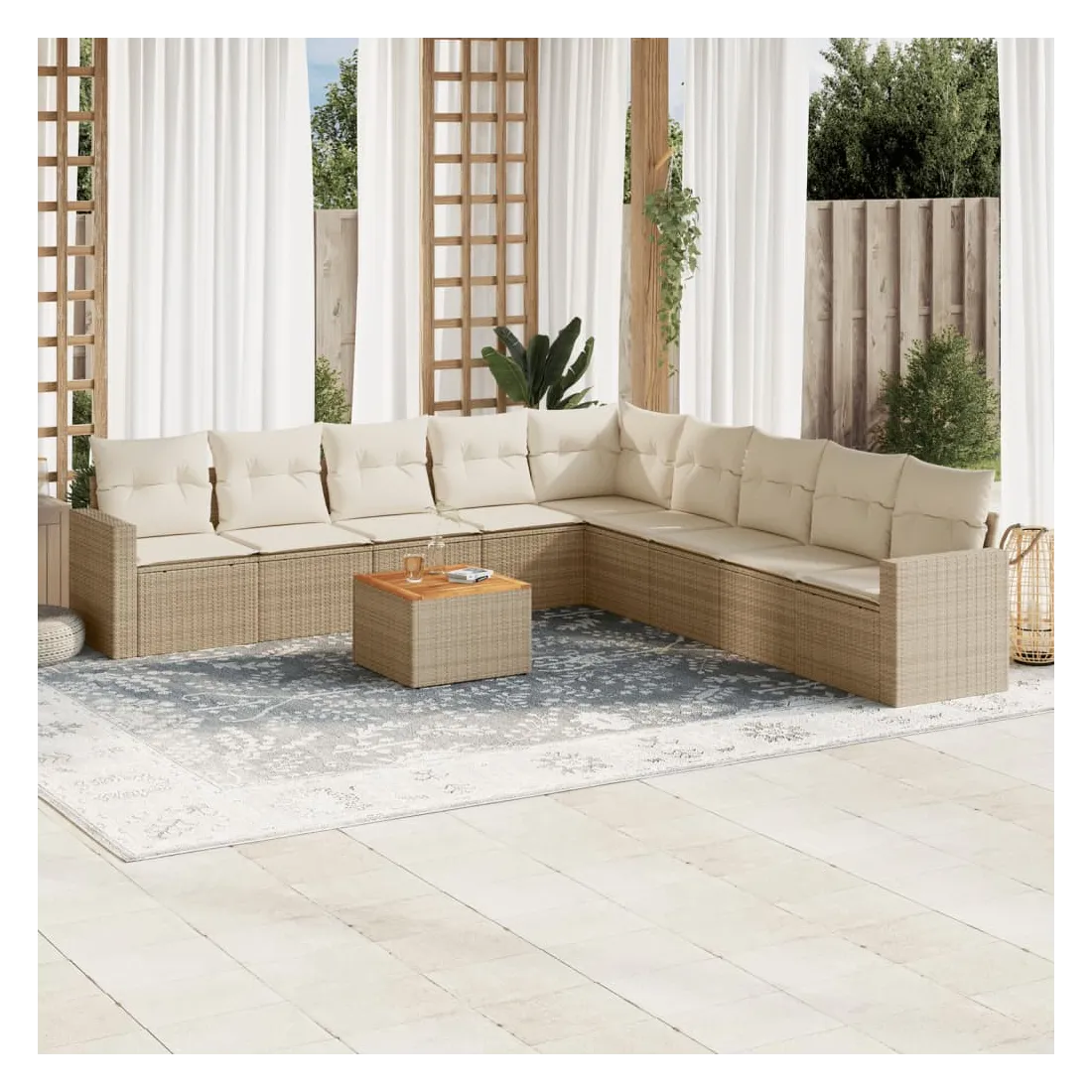 Cet ensemble de canapés de jardin est le complément parfait de votre arrière-cour, terrasse ou patio, offrant un espace confortable et accueillant pour discuter avec la famille et les amis ou simplement se détendre et profiter de l'extérieur. Matériau durable : la résine tressée, également connue sous le nom de poly rotin, est un matériau synthétique solide et nécessitant peu d'entretien qui ressemble au rotin naturel. Il est léger, facile à nettoyer et couramment utilisé pour les meubles d'extérieur en raison de sa durabilité et de ses propriétés de résistance aux intempéries.Fonction de rangement avec sac résistant à l'eau : chaque siège de jardin dispose d'un espace de rangement sous l'assise, complété par un sac résistant à l'eau pour ranger les coussins, les jouets et d'autres objets. Les sacs intérieurs sont dotés d'un couvercle et peuvent être solidement fixés aux sièges à l'aide de bandes auto-agrippantes pour plus de stabilité.Dessus stable et facile à nettoyer : cette table de jardin a un dessus en bois d'acacia robuste, durable et facile à nettoyer avec un chiffon humide.Housse amovible et lavable : ces coussins de siège sont dotés de housses amovibles pour un lavage et un entretien faciles.Conception modulaire : cet ensemble de meubles d'extérieur a une conception modulaire, ce qui le rend complètement flexible et facile à déplacer, afin que vous puissiez créer un agencement de meubles d'extérieur personnalisé. Bon à savoir :Pour que vos meubles d'extérieur restent beaux, nous vous recommandons de les protéger avec une housse imperméable.