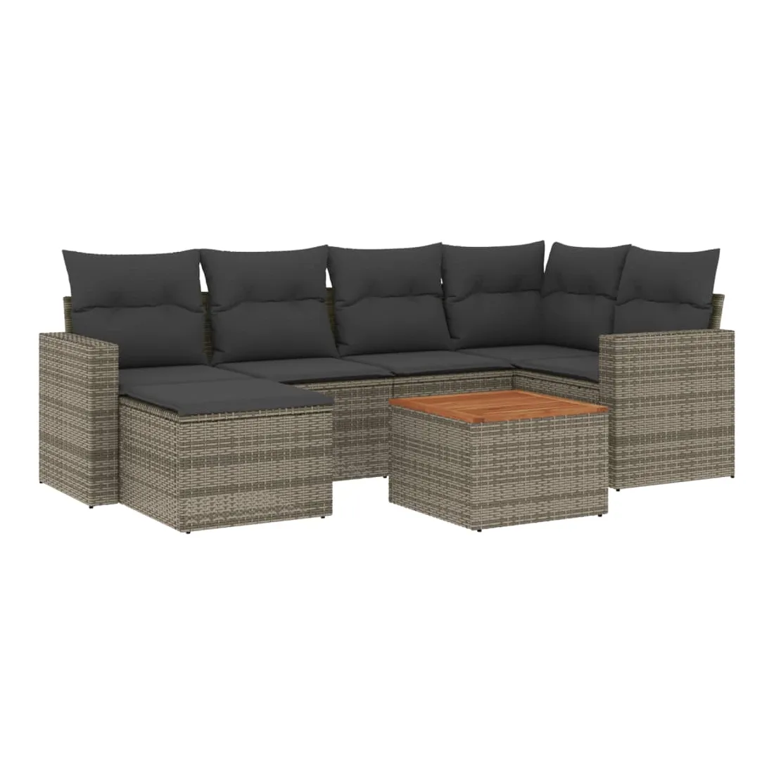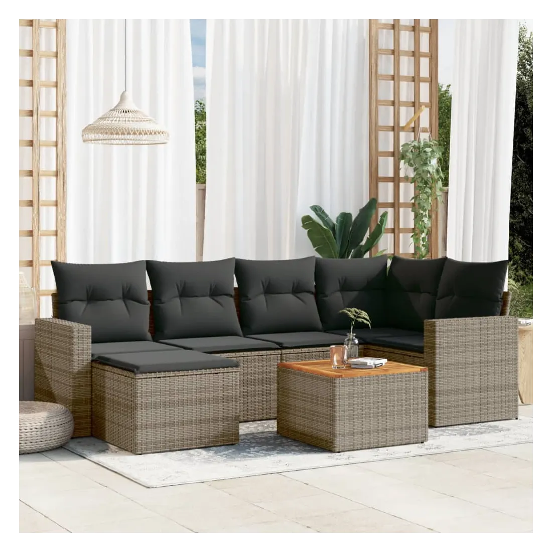 Cet ensemble de canapés de jardin est le complément parfait de votre arrière-cour, terrasse ou patio, offrant un espace confortable et accueillant pour discuter avec la famille et les amis ou simplement se détendre et profiter de l'extérieur. Matériau durable : la résine tressée, également connue sous le nom de poly rotin, est un matériau synthétique solide et nécessitant peu d'entretien qui ressemble au rotin naturel. Il est léger, facile à nettoyer et couramment utilisé pour les meubles d'extérieur en raison de sa durabilité et de ses propriétés de résistance aux intempéries.Fonction de rangement avec sac résistant à l'eau : chaque siège de jardin dispose d'un espace de rangement sous l'assise, complété par un sac résistant à l'eau pour ranger les coussins, les jouets et d'autres objets. Les sacs intérieurs sont dotés d'un couvercle et peuvent être solidement fixés aux sièges à l'aide de bandes auto-agrippantes pour plus de stabilité.Dessus stable et facile à nettoyer : cette table de jardin a un dessus en bois d'acacia robuste, durable et facile à nettoyer avec un chiffon humide.Pouf polyvalent : le tabouret est polyvalent, servant de repose-pieds confortable lorsque vous vous prélassez sur le canapé ou de siège supplémentaire dans votre jardin.Conception modulaire : cet ensemble de meubles d'extérieur a une conception modulaire, ce qui le rend complètement flexible et facile à déplacer, afin que vous puissiez créer un agencement de meubles d'extérieur personnalisé. Bon à savoir :Pour que vos meubles d'extérieur restent beaux, nous vous recommandons de les protéger avec une housse imperméable.