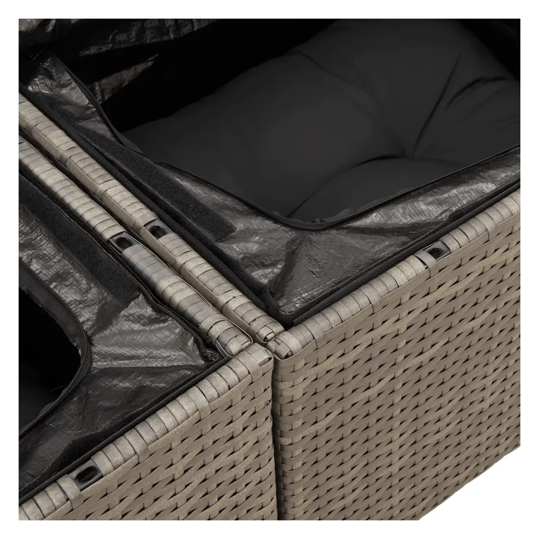 Cet ensemble de canapés de jardin est le complément parfait de votre arrière-cour, terrasse ou patio, offrant un espace confortable et accueillant pour discuter avec la famille et les amis ou simplement se détendre et profiter de l'extérieur. Matériau durable : la résine tressée, également connue sous le nom de poly rotin, est un matériau synthétique solide et nécessitant peu d'entretien qui ressemble au rotin naturel. Il est léger, facile à nettoyer et couramment utilisé pour les meubles d'extérieur en raison de sa durabilité et de ses propriétés de résistance aux intempéries.Fonction de rangement avec sac résistant à l'eau : chaque siège de jardin dispose d'un espace de rangement sous l'assise, complété par un sac résistant à l'eau pour ranger les coussins, les jouets et d'autres objets. Les sacs intérieurs sont dotés d'un couvercle et peuvent être solidement fixés aux sièges à l'aide de bandes auto-agrippantes pour plus de stabilité.Dessus stable et facile à nettoyer : cette table de jardin a un dessus en bois d'acacia robuste, durable et facile à nettoyer avec un chiffon humide.Pouf polyvalent : le tabouret est polyvalent, servant de repose-pieds confortable lorsque vous vous prélassez sur le canapé ou de siège supplémentaire dans votre jardin.Conception modulaire : cet ensemble de meubles d'extérieur a une conception modulaire, ce qui le rend complètement flexible et facile à déplacer, afin que vous puissiez créer un agencement de meubles d'extérieur personnalisé. Bon à savoir :Pour que vos meubles d'extérieur restent beaux, nous vous recommandons de les protéger avec une housse imperméable.