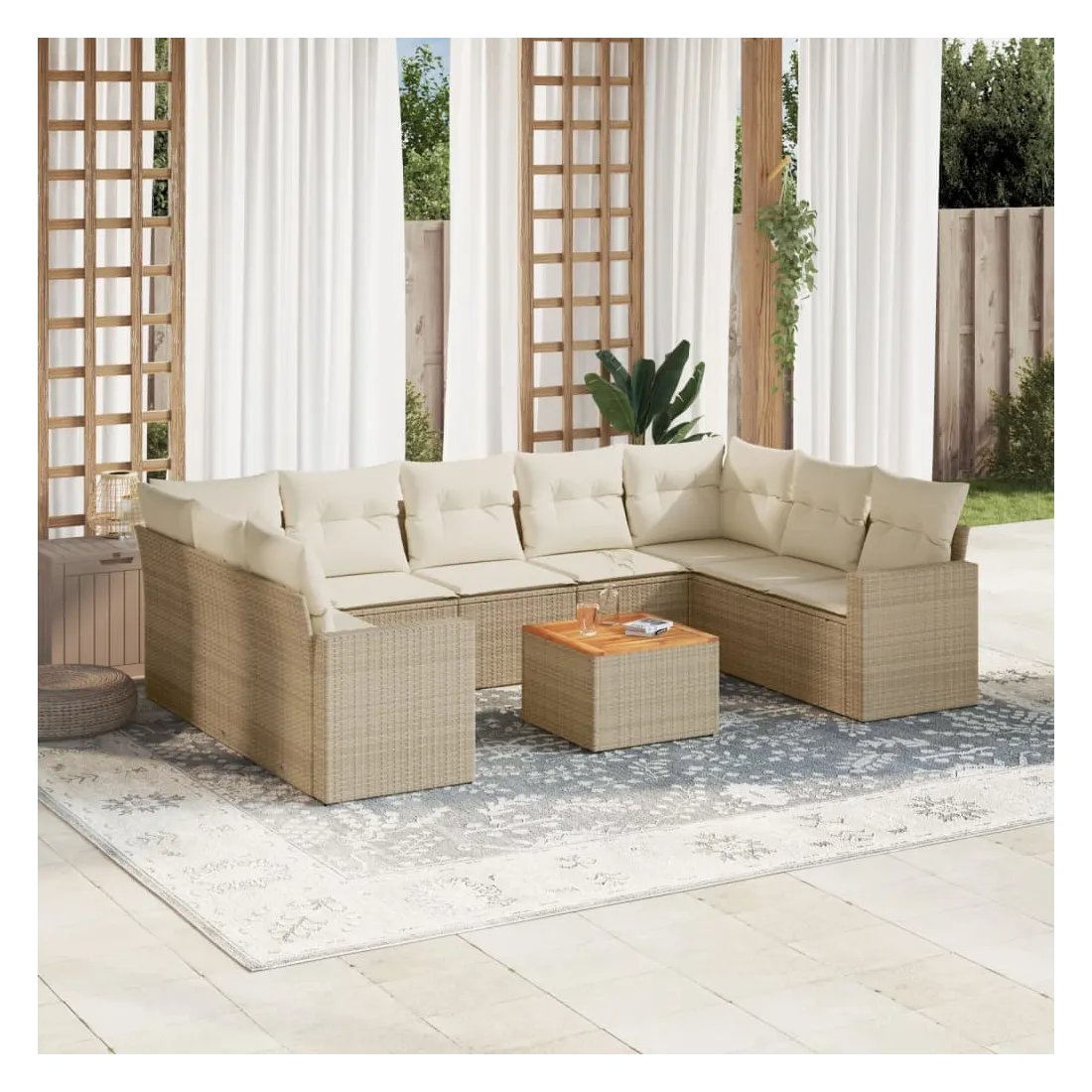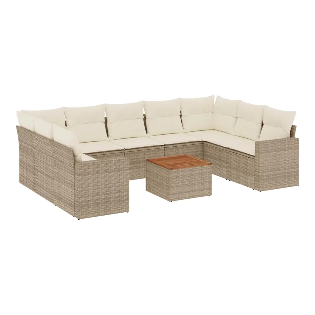 Salon de jardin avec coussins 10 pcs beige résine tressée